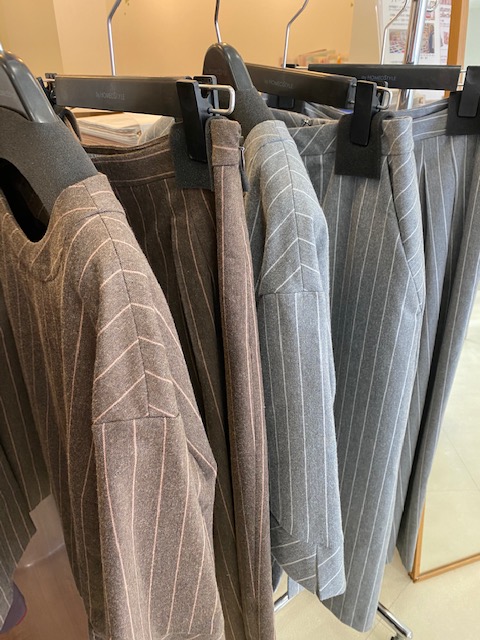 イタリアのロックダウンコロナの影響で商品の完成、到着が遅れていたウールストライプのブラウス、スカート、パンツが今日やっとハウスに届きましたぁ~