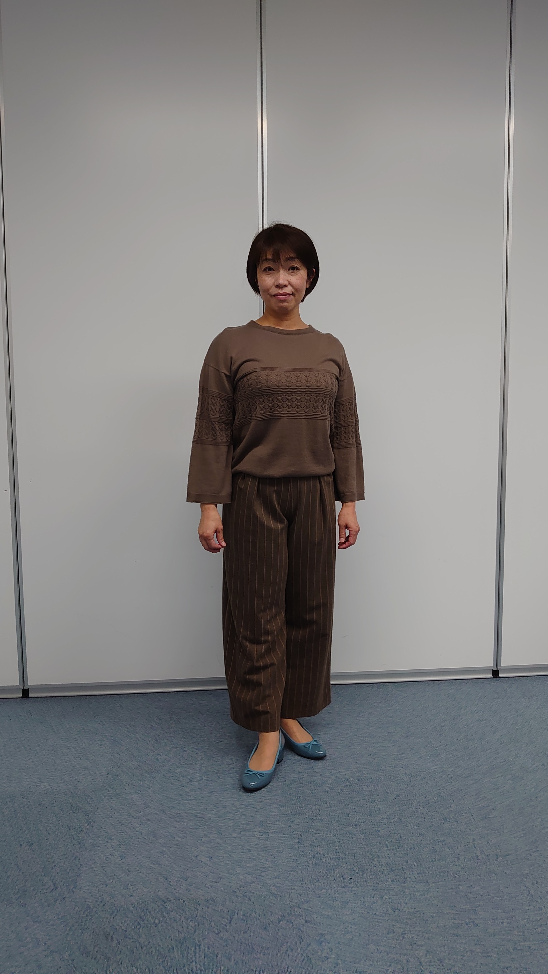 ウールストライプパンツ・・・メンズライクな印象のストライプパンツもタックの効果でほどよく女性らしいシルエットに