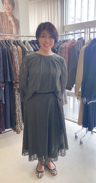 サテンナロースカート(暗くなりがちな冬着こなしにツヤを取り入れて🙂バイヤス仕立てで流れるような縦長ラインがエレガント)