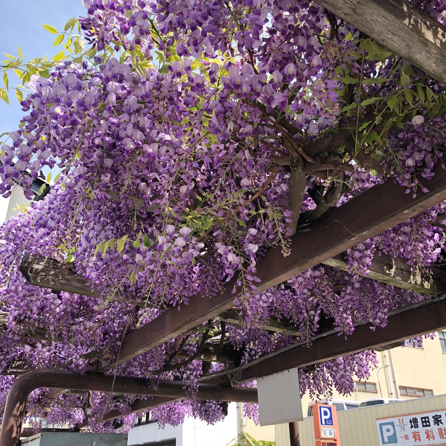 通りに入るとすぐ藤の花が。きれいですね。
