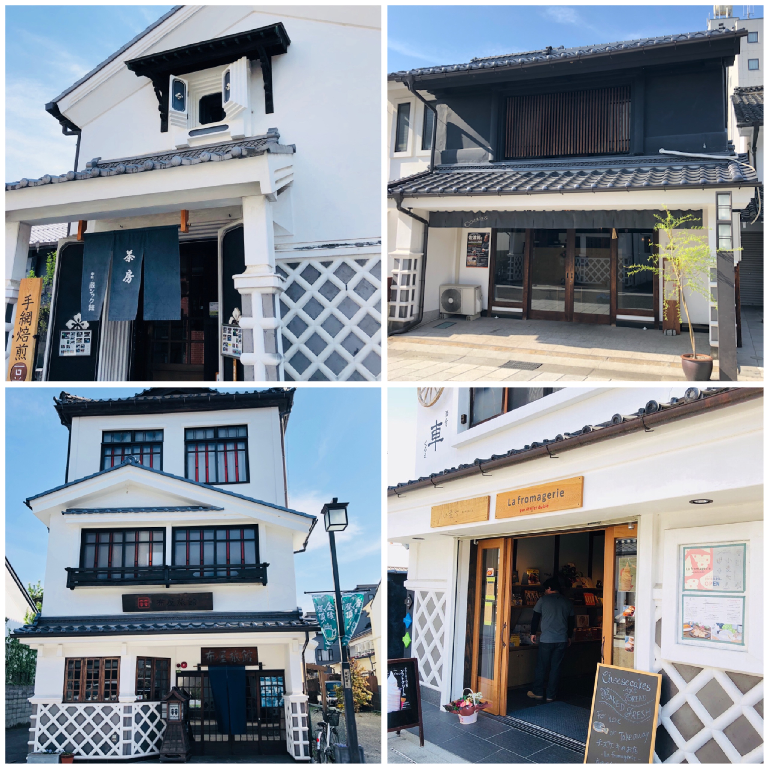 カフェ、お食事処、旅館、ケーキ屋さん・・・すべて蔵造りのお店です。