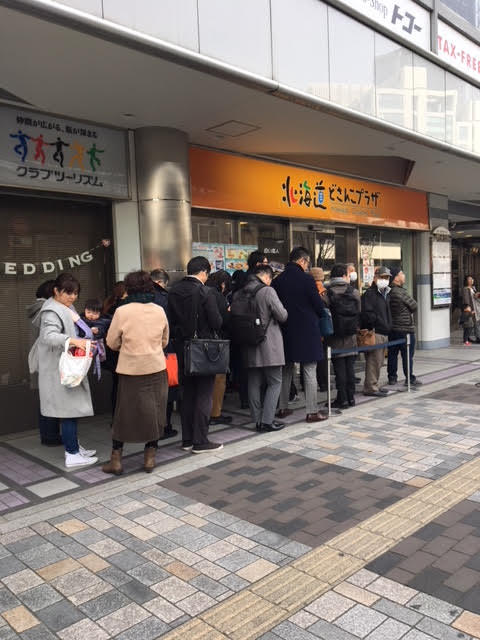 今朝の有楽町駅前『どさんこプラザ(北海道のアンテナショップ)』の今朝9時すぎの様子。