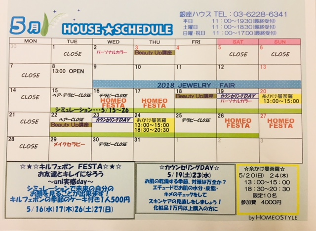 HOMEO BLOGホメオスタイルのブログ ハウスブログ 銀座 2018.4.29 銀座 ☆銀座ハウス☆ 5月ハウススケジュール GWに突入しましたね~(╹◡╹)☆☆ 5月の銀座ハウスのスケジュールです。 GW中・・・ 5/5、6がハウスクローズになります 5/9(水)~13(日)はジュエリーフェアを(╹◡╹) ☆*:.。 開催します!! 4月に初開催して大好評だった『糸かけ曼荼羅』は、5/20(日)と5/24(水)の2日間、行います♪ *明日4月30日は月曜日ですがハウスOPENしています。 Share Post: カテゴリー コラム 一覧 計量スプーンも包丁もいらない♪ 超カンタン&おいしい元気回復系スムージー アリーのHOMEO LIFE~私のお腹の中を覗いてみる。~ 「夏のスキンケア」 カラダがほしがる水 大人の夏肌は(๑•̀ㅂ•́)و✧ 細胞力をUPしましょう☆彡 今年の夏旅におすすめ ハウスブログ 一覧 6月のスケジュールです✨️ eコンクファンタスティック2023✨️ マルチオイル美容液💧 新城ハウスです🎏 5月のスケジュール🎏 米沢ハウス☘️5月スケジュール 下書き東北仙台伊達福島山形米沢関東横浜銀座新宿土浦大宮東海浜松浜北豊橋新城田原湖西名古屋岡崎西尾吉良信越・北陸長野北長野千曲松本上田佐久中野上越あらい関西大阪京都奈良吉野中国倉敷岡山福山 最近の投稿 6月のスケジュールです✨️ 2023.5.31 eコンクファンタスティック2023✨️ 2023.5.18 マルチオイル美容液💧 2023.5.8 新城ハウスです🎏 2023.5.7 5月のスケジュール🎏 2023.5.2 人気の投稿 洋服の歴史 43 views <地域限定コラボ> 地域の皆様だけのお得な話♪【 Vol.8仙台 】 17 views ☆山梨銘菓 かねたまる餅☆ 13 views <倭‐YAMATO> 11 views 本日の名古屋は😊 9 views #赤井先生#ジュエリー#クリスマス#年末#キラキラ#プレゼント 8 views 芸術の秋ですねぇ 8 views 平均寿命と健康寿命 8 views ハンドピーリング♪ 7 views マツコの知らない抹茶スイーツの世界☆西尾 7 views アーカイブ 2023 6月のスケジュールです✨️ eコンクファンタスティック2023✨️ マルチオイル美容液💧 新城ハウスです🎏 5月のスケジュール🎏 2022 皆様をお出迎え(^^♪ 今年もありがとうございました。 1月のスケジュール🎍 1月のスケジュール 佐久1月 スケジュ-ル 2021 2021年ありがとうございました ありがとうございました✨ 本年もありがとうございました🍀 年末好例!!お餅つき 大阪ハウスより感謝の気持ちを込めて・・・💛 2020 2020年もありがとうございました☆ 2021年もよろしくお願い致します🐄 予告!21年2月に腸内フローラチェックが受けられます。 嬉しいお声! ホメオスタイル大宮1月スケジュール 2019 1月のスケジュール 年末年始に菌活🎶 大晦日 ありがとうございました。 大晦日♪ 2018 2018年も、ありがとうございました。 奈良ハウスの門松 2018年ありがとうございました ~2019:1月スケジュール~ 1月スケジュール 2017 2017年良いお年を✨岡山ハウス ハーバリウム♪ 有馬温泉 冬の御堂筋 ありがとうございました😊❤ 2016 今年も一年ありがとうございました⭐️ 大晦日 長野ハウス★今年も一年ありがとうございました! 12月30日(金) 仙台ハウスより 美活のための年末大掃除