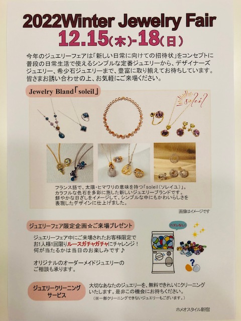 新宿ハウスでは12月15日から18日までジュエリーフェアを開催します!
