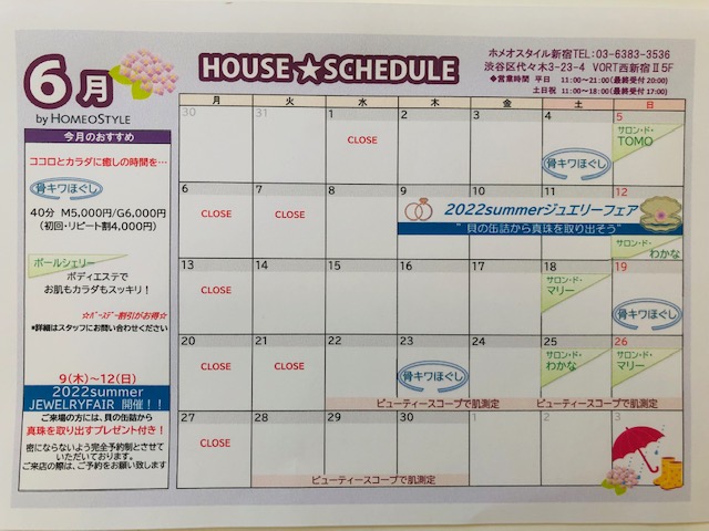 HOMEO BLOGホメオスタイルのブログ ハウスブログ 新宿 2022.5.30 新宿 ☆6月スケジュール☆ 暑くなったり、寒くなったり、不安定な5月だなーと思っていたら、 もう5月が終わろうとしています! 6月のスケジュールです! 6月もたくさんの方のご来店を楽しみに お待ちしております!! Share Post: カテゴリー コラム 一覧 計量スプーンも包丁もいらない♪ 超カンタン&おいしい元気回復系スムージー アリーのHOMEO LIFE~私のお腹の中を覗いてみる。~ 「夏のスキンケア」 カラダがほしがる水 大人の夏肌は(๑•̀ㅂ•́)و✧ 細胞力をUPしましょう☆彡 今年の夏旅におすすめ ハウスブログ 一覧 6月のスケジュールです✨️ eコンクファンタスティック2023✨️ マルチオイル美容液💧 新城ハウスです🎏 5月のスケジュール🎏 米沢ハウス☘️5月スケジュール 下書き東北仙台伊達福島山形米沢関東横浜銀座新宿土浦大宮東海浜松浜北豊橋新城田原湖西名古屋岡崎西尾吉良信越・北陸長野北長野千曲松本上田佐久中野上越あらい関西大阪京都奈良吉野中国倉敷岡山福山 最近の投稿 6月のスケジュールです✨️ 2023.5.31 eコンクファンタスティック2023✨️ 2023.5.18 マルチオイル美容液💧 2023.5.8 新城ハウスです🎏 2023.5.7 5月のスケジュール🎏 2023.5.2 人気の投稿 洋服の歴史 47 views <地域限定コラボ> 地域の皆様だけのお得な話♪【 Vol.8仙台 】 21 views ☆山梨銘菓 かねたまる餅☆ 13 views <倭‐YAMATO> 11 views 本日の名古屋は😊 9 views 雪やこんこ♪ 8 views マツコの知らない抹茶スイーツの世界☆西尾 8 views 芸術の秋ですねぇ 8 views 平均寿命と健康寿命 8 views ハンドピーリング♪ 7 views アーカイブ 2023 6月のスケジュールです✨️ eコンクファンタスティック2023✨️ マルチオイル美容液💧 新城ハウスです🎏 5月のスケジュール🎏 2022 皆様をお出迎え(^^♪ 今年もありがとうございました。 1月のスケジュール🎍 1月のスケジュール 佐久1月 スケジュ-ル 2021 2021年ありがとうございました ありがとうございました✨ 本年もありがとうございました🍀 年末好例!!お餅つき 大阪ハウスより感謝の気持ちを込めて・・・💛 2020 2020年もありがとうございました☆ 2021年もよろしくお願い致します🐄 予告!21年2月に腸内フローラチェックが受けられます。 嬉しいお声! ホメオスタイル大宮1月スケジュール 2019 1月のスケジュール 年末年始に菌活🎶 大晦日 ありがとうございました。 大晦日♪ 2018 2018年も、ありがとうございました。 奈良ハウスの門松 2018年ありがとうございました ~2019:1月スケジュール~ 1月スケジュール 2017 2017年良いお年を✨岡山ハウス ハーバリウム♪ 有馬温泉 冬の御堂筋 ありがとうございました😊❤ 2016 今年も一年ありがとうございました⭐️ 大晦日 長野ハウス★今年も一年ありがとうございました! 12月30日(金) 仙台ハウスより 美活のための年末大掃除
