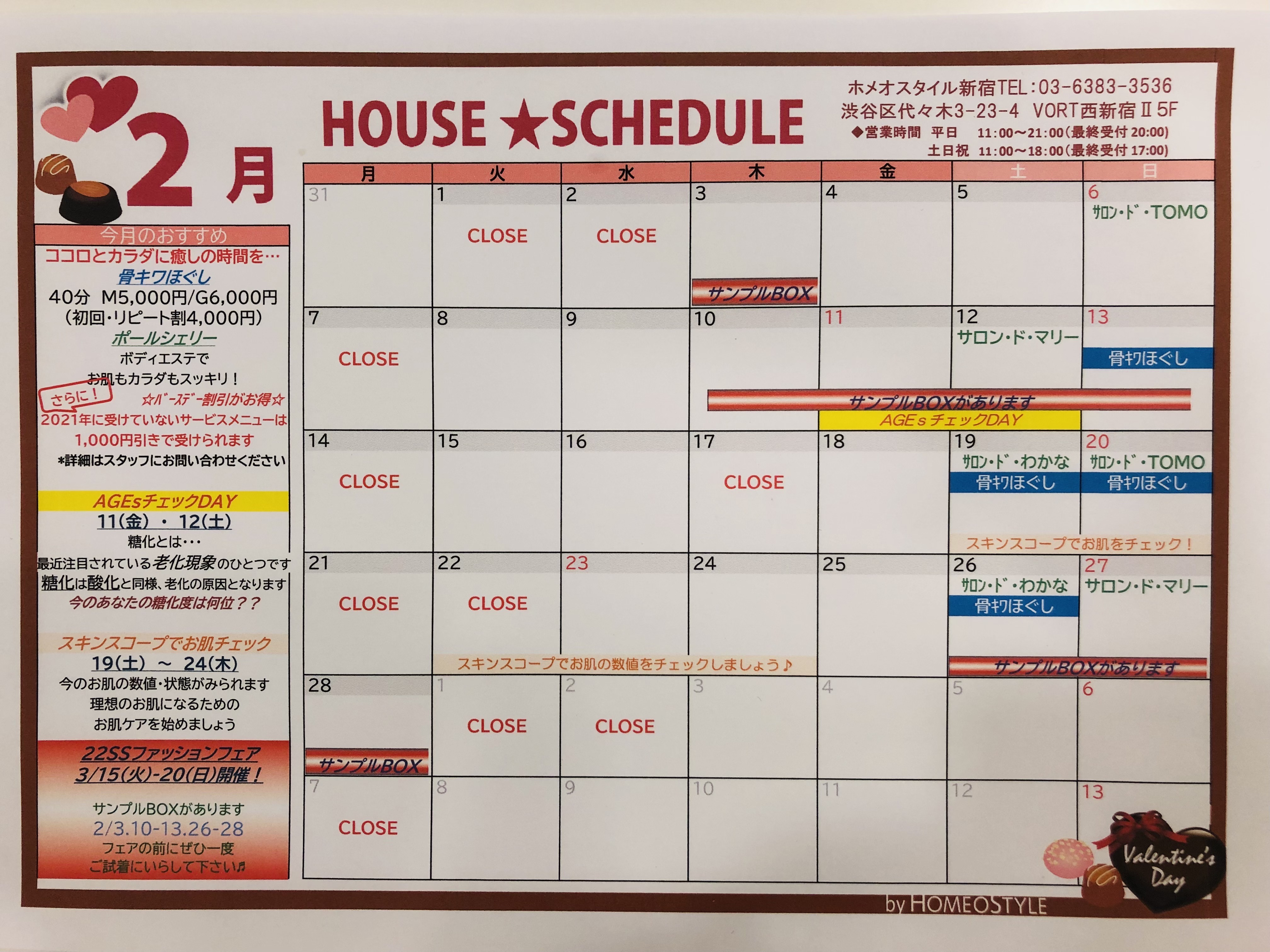 HOMEO BLOGホメオスタイルのブログ ハウスブログ 新宿 2022.1.22 新宿 ❄️新宿2月スケジュール❄️ 毎日寒い日が続いてますがいかがお過ごしでしょうか。ぜひお手入れにお越しくださいませ。身体も気持ちもぽっかぽかになるサービスを準備してお待ちしております✨ Share Post: カテゴリー コラム 一覧 計量スプーンも包丁もいらない♪ 超カンタン&おいしい元気回復系スムージー アリーのHOMEO LIFE~私のお腹の中を覗いてみる。~ 「夏のスキンケア」 カラダがほしがる水 大人の夏肌は(๑•̀ㅂ•́)و✧ 細胞力をUPしましょう☆彡 今年の夏旅におすすめ ハウスブログ 一覧 6月のスケジュールです✨️ eコンクファンタスティック2023✨️ マルチオイル美容液💧 新城ハウスです🎏 5月のスケジュール🎏 米沢ハウス☘️5月スケジュール 下書き東北仙台伊達福島山形米沢関東横浜銀座新宿土浦大宮東海浜松浜北豊橋新城田原湖西名古屋岡崎西尾吉良信越・北陸長野北長野千曲松本上田佐久中野上越あらい関西大阪京都奈良吉野中国倉敷岡山福山 最近の投稿 6月のスケジュールです✨️ 2023.5.31 eコンクファンタスティック2023✨️ 2023.5.18 マルチオイル美容液💧 2023.5.8 新城ハウスです🎏 2023.5.7 5月のスケジュール🎏 2023.5.2 人気の投稿 洋服の歴史 34 views <地域限定コラボ> 地域の皆様だけのお得な話♪【 Vol.8仙台 】 22 views #赤井先生#ジュエリー#クリスマス#年末#キラキラ#プレゼント 15 views <倭‐YAMATO> 12 views ☆山梨銘菓 かねたまる餅☆ 10 views β2AR遺伝子 9 views 芸術の秋ですねぇ 8 views 平均寿命と健康寿命 8 views 本日の名古屋は😊 8 views マツコの知らない抹茶スイーツの世界☆西尾 7 views アーカイブ 2023 6月のスケジュールです✨️ eコンクファンタスティック2023✨️ マルチオイル美容液💧 新城ハウスです🎏 5月のスケジュール🎏 2022 皆様をお出迎え(^^♪ 今年もありがとうございました。 1月のスケジュール🎍 1月のスケジュール 佐久1月 スケジュ-ル 2021 2021年ありがとうございました ありがとうございました✨ 本年もありがとうございました🍀 年末好例!!お餅つき 大阪ハウスより感謝の気持ちを込めて・・・💛 2020 2020年もありがとうございました☆ 2021年もよろしくお願い致します🐄 予告!21年2月に腸内フローラチェックが受けられます。 嬉しいお声! ホメオスタイル大宮1月スケジュール 2019 1月のスケジュール 年末年始に菌活🎶 大晦日 ありがとうございました。 大晦日♪ 2018 2018年も、ありがとうございました。 奈良ハウスの門松 2018年ありがとうございました ~2019:1月スケジュール~ 1月スケジュール 2017 2017年良いお年を✨岡山ハウス ハーバリウム♪ 有馬温泉 冬の御堂筋 ありがとうございました😊❤ 2016 今年も一年ありがとうございました⭐️ 大晦日 長野ハウス★今年も一年ありがとうございました! 12月30日(金) 仙台ハウスより 美活のための年末大掃除