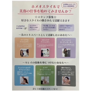 ホメオスタイルでは一緒に美容の仕事をしてくださる方を募集しています。