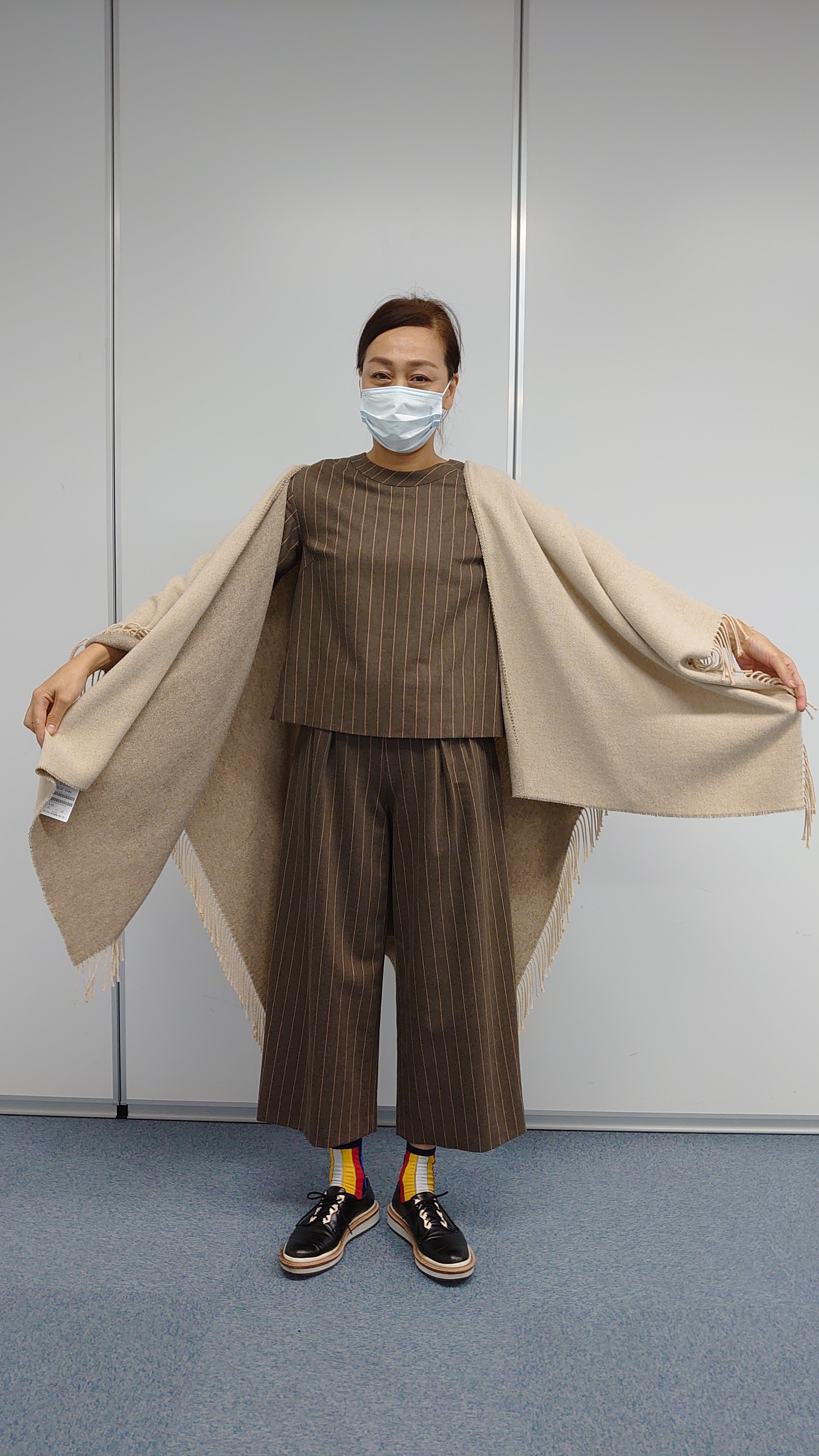 イタリアのロックダウン、コロナの影響で商品の完成、到着が遅れていたウールストライプのブラウス、スカート、パンツが今日やっとハウスに届きましたぁ~
