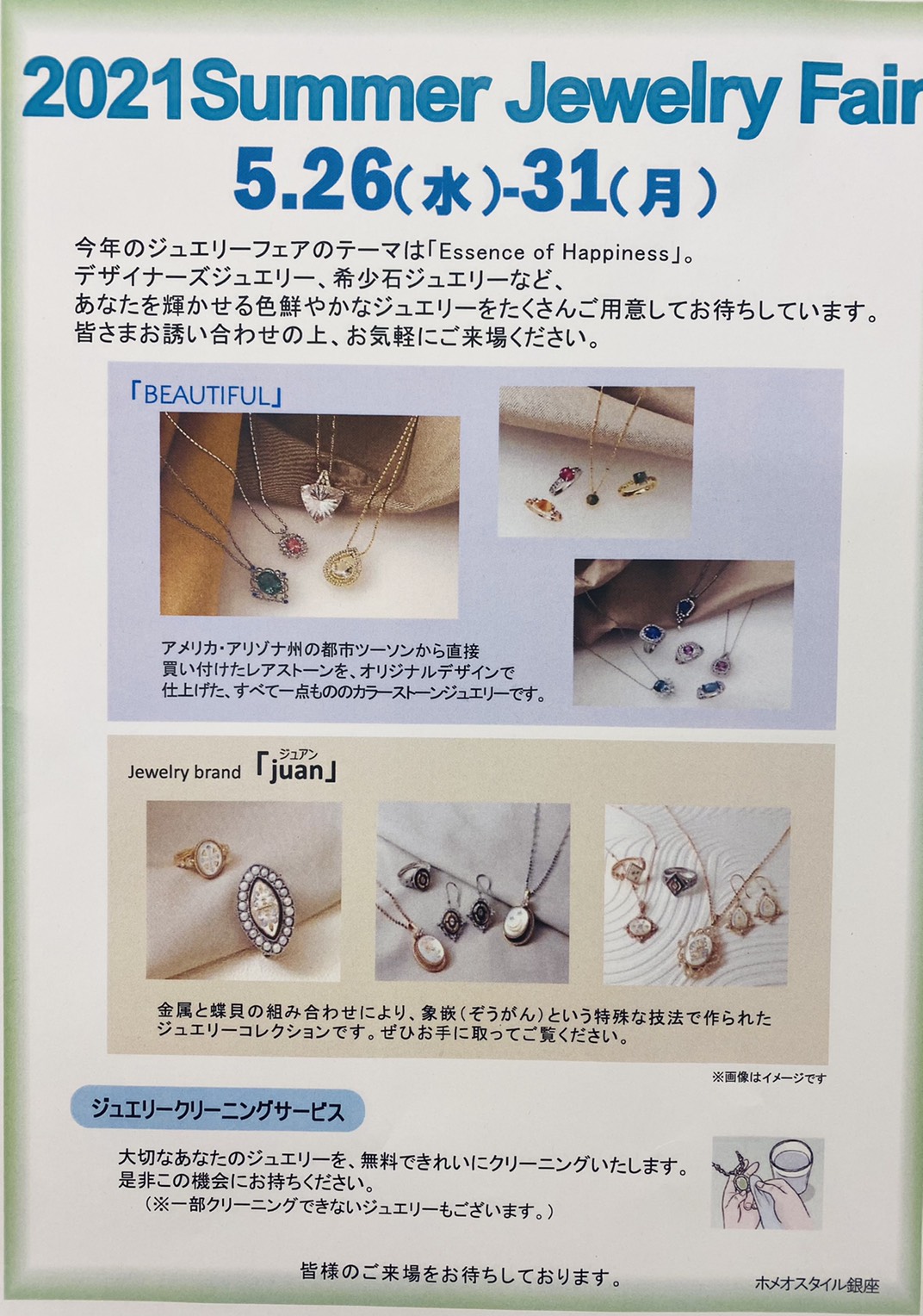 銀座ハウスにアリゾナから直接買い付けたレアストーン、1点もののカラーストーンジュエリーが見れます😊 お持ちのジュエリーを持ってきてくれると無料でクリーニングしてもらえます。
