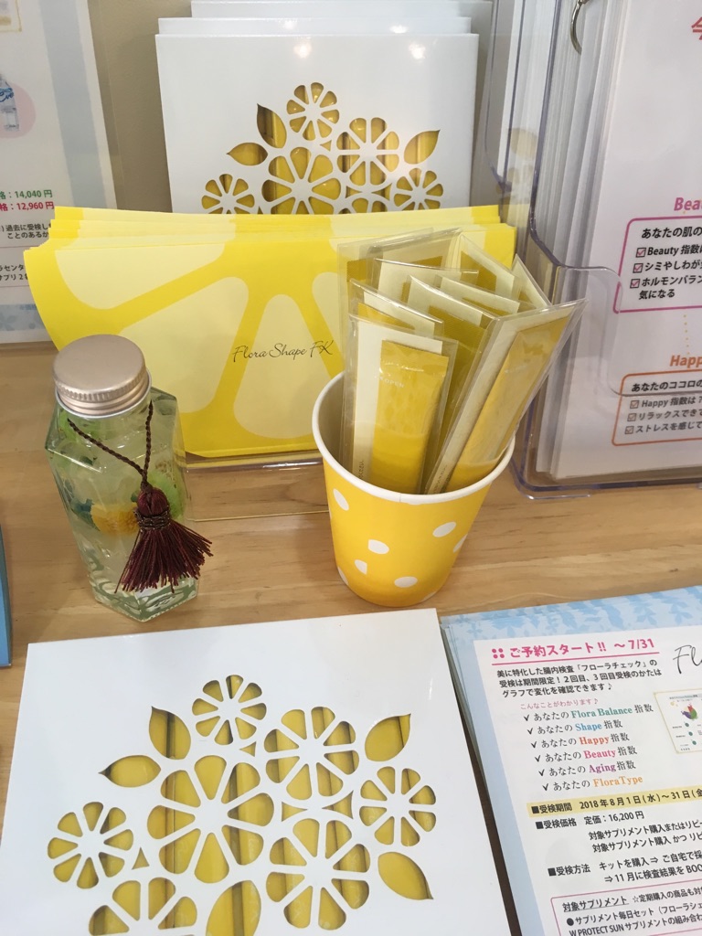フローラチェック→Flora Balance(腸内細菌の種類、善玉菌、悪玉菌、日和見菌のバランス) ,Shape(太る菌、やせる菌のバランス),Happy(しあわせホルモン)