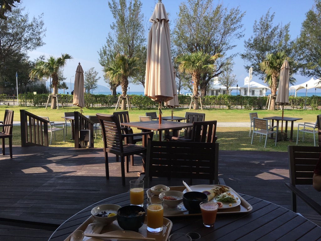 最後の日の朝食は天気も良かったので、ホテルのテラスでビュッフェをいただきました♪