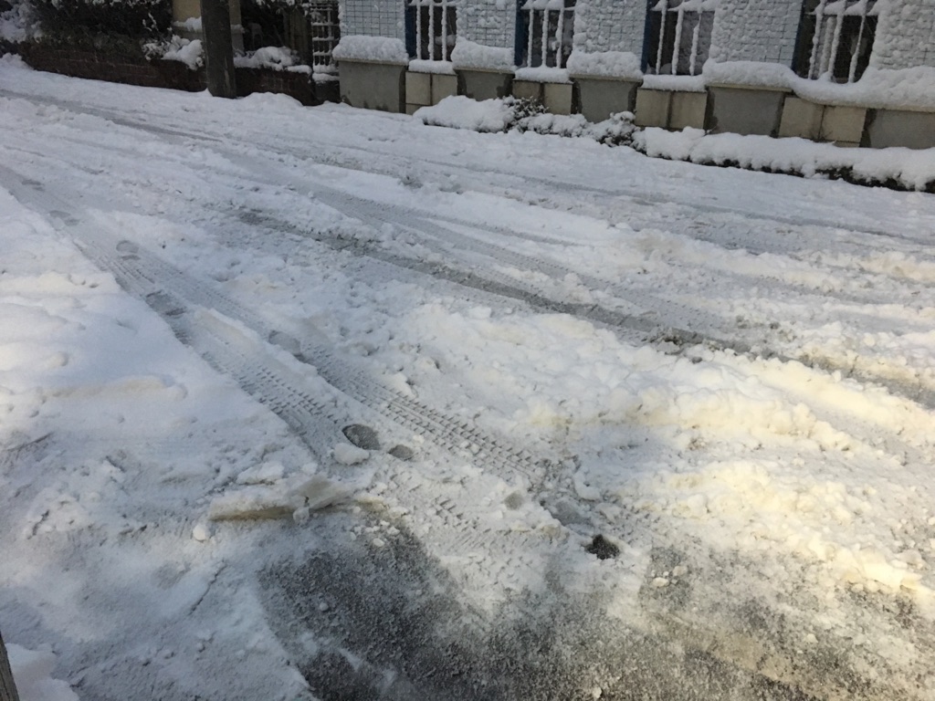 久々のまとまった積雪・・路面凍結におびえながら歩く日々でございます。