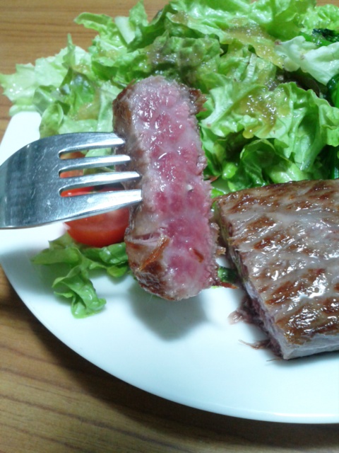 出来上がったステーキにナイフを入れたとたんに「おおおお~っ!!」と思わず叫ぶ息子。