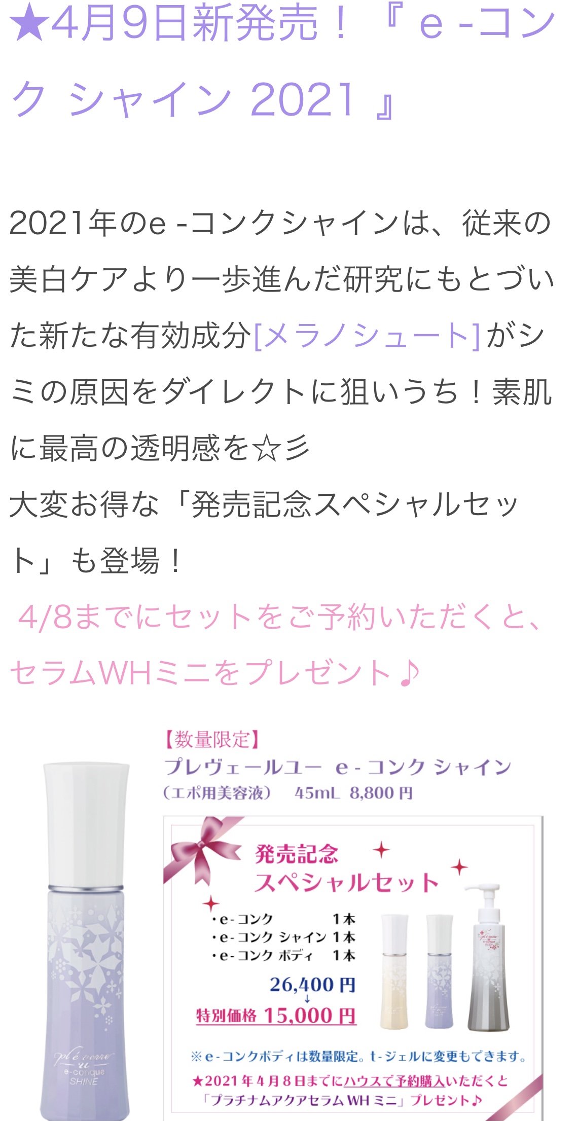HOMEO BLOGホメオスタイルのブログ ハウスブログ 銀座 2021.4.6 銀座 今日は➡ Happy 1 day 本日17時より♪Happy1Day➕♪が始まります 今月のHappy商品は、 クロスケイ シャンプー クロスケイ トリートメント クロスケイ スカルプローション ダブルプロテクトサン サプリメント が10%OFFになってます。 Web限定で15000円以上で二つ折りティッシュポーチをプレゼントプレゼント そして、今月発売のeコンクシャイン 発売記念スペシャルセットを8日までにご予約いただくと、「アクアセラムWHミニ」プレゼントです eコンクBody もおすすめです。使ったことない方は是非🧡 Share Post: カテゴリー コラム 一覧 計量スプーンも包丁もいらない♪ 超カンタン&おいしい元気回復系スムージー アリーのHOMEO LIFE~私のお腹の中を覗いてみる。~ 「夏のスキンケア」 カラダがほしがる水 大人の夏肌は(๑•̀ㅂ•́)و✧ 細胞力をUPしましょう☆彡 今年の夏旅におすすめ ハウスブログ 一覧 6月のスケジュールです✨️ eコンクファンタスティック2023✨️ マルチオイル美容液💧 新城ハウスです🎏 5月のスケジュール🎏 米沢ハウス☘️5月スケジュール 下書き東北仙台伊達福島山形米沢関東横浜銀座新宿土浦大宮東海浜松浜北豊橋新城田原湖西名古屋岡崎西尾吉良信越・北陸長野北長野千曲松本上田佐久中野上越あらい関西大阪京都奈良吉野中国倉敷岡山福山 最近の投稿 6月のスケジュールです✨️ 2023.5.31 eコンクファンタスティック2023✨️ 2023.5.18 マルチオイル美容液💧 2023.5.8 新城ハウスです🎏 2023.5.7 5月のスケジュール🎏 2023.5.2 人気の投稿 洋服の歴史 49 views <地域限定コラボ> 地域の皆様だけのお得な話♪【 Vol.8仙台 】 18 views ☆山梨銘菓 かねたまる餅☆ 14 views <倭‐YAMATO> 11 views 本日の名古屋は😊 9 views #赤井先生#ジュエリー#クリスマス#年末#キラキラ#プレゼント 8 views 芸術の秋ですねぇ 8 views 平均寿命と健康寿命 8 views ハンドピーリング♪ 7 views マツコの知らない抹茶スイーツの世界☆西尾 7 views アーカイブ 2023 6月のスケジュールです✨️ eコンクファンタスティック2023✨️ マルチオイル美容液💧 新城ハウスです🎏 5月のスケジュール🎏 2022 皆様をお出迎え(^^♪ 今年もありがとうございました。 1月のスケジュール🎍 1月のスケジュール 佐久1月 スケジュ-ル 2021 2021年ありがとうございました ありがとうございました✨ 本年もありがとうございました🍀 年末好例!!お餅つき 大阪ハウスより感謝の気持ちを込めて・・・💛 2020 2020年もありがとうございました☆ 2021年もよろしくお願い致します🐄 予告!21年2月に腸内フローラチェックが受けられます。 嬉しいお声! ホメオスタイル大宮1月スケジュール 2019 1月のスケジュール 年末年始に菌活🎶 大晦日 ありがとうございました。 大晦日♪ 2018 2018年も、ありがとうございました。 奈良ハウスの門松 2018年ありがとうございました ~2019:1月スケジュール~ 1月スケジュール 2017 2017年良いお年を✨岡山ハウス ハーバリウム♪ 有馬温泉 冬の御堂筋 ありがとうございました😊❤ 2016 今年も一年ありがとうございました⭐️ 大晦日 長野ハウス★今年も一年ありがとうございました! 12月30日(金) 仙台ハウスより 美活のための年末大掃除