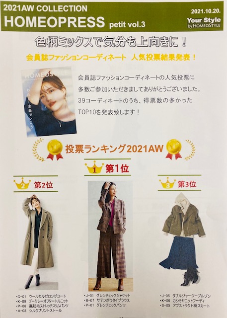 会員誌のファッションコーデイネート人気投票の結果が出ました。
