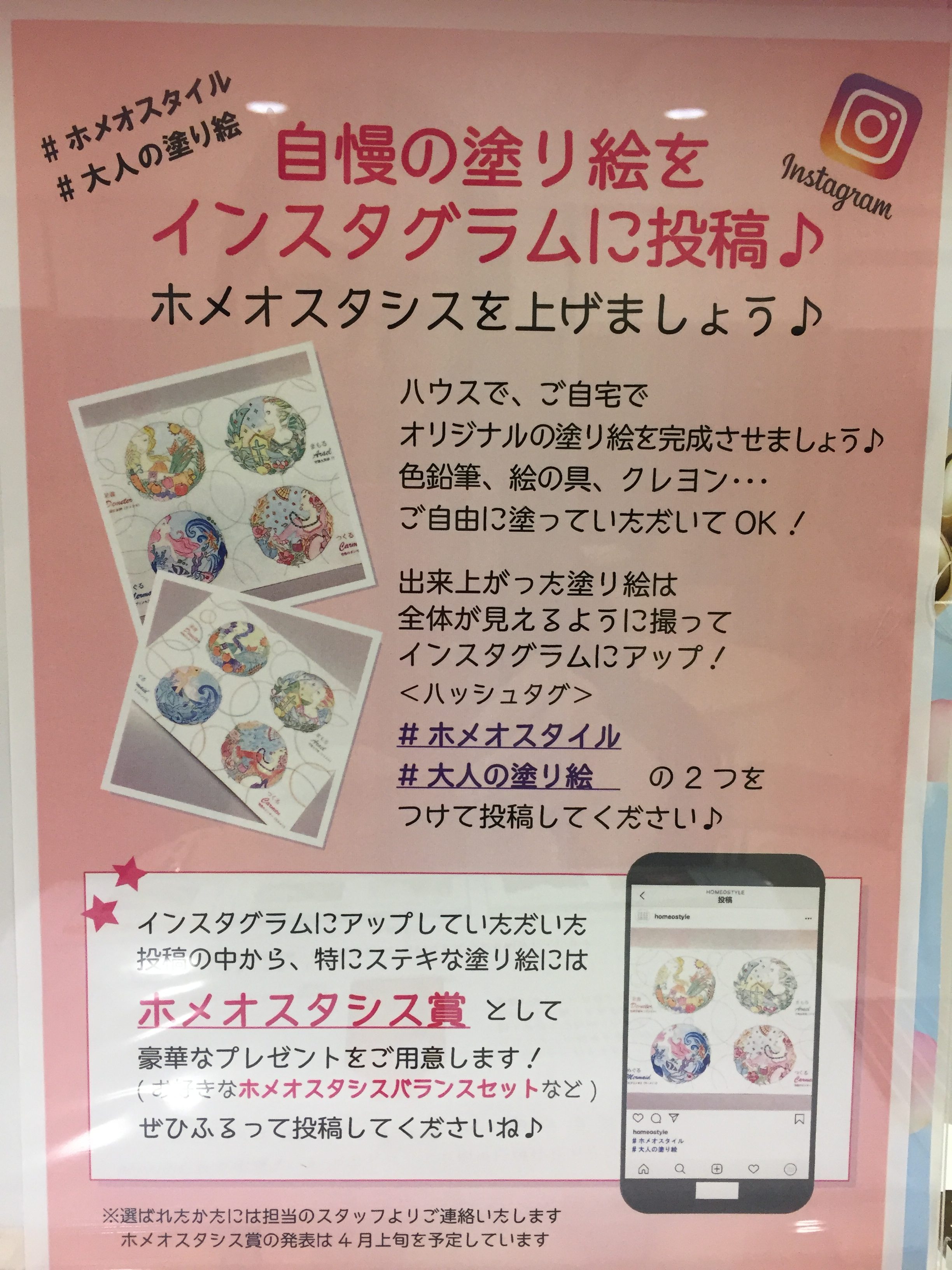 完成したら2つのハッシュタグ#ホメオスタイル#大人の塗り絵