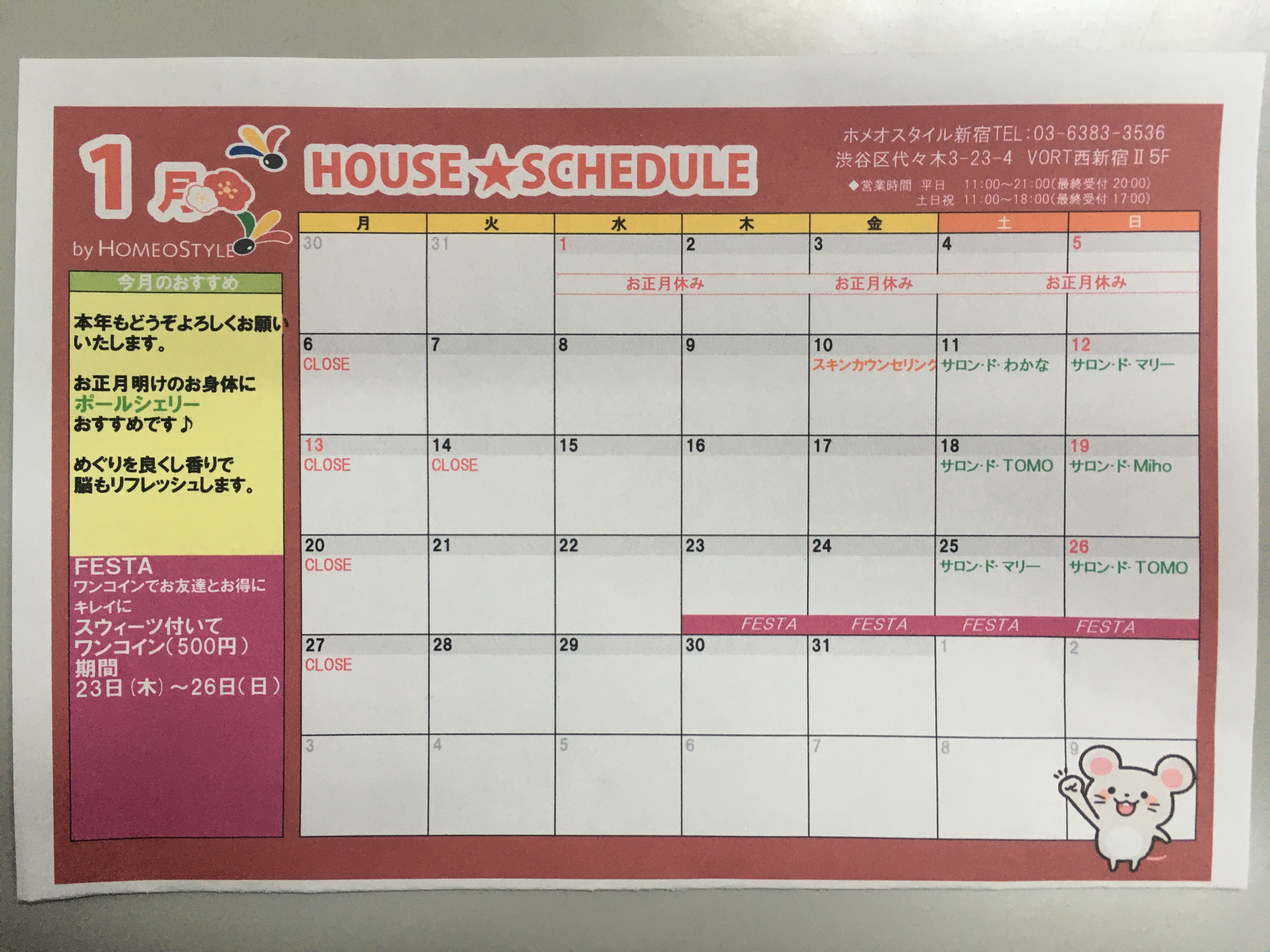 HOMEO BLOGホメオスタイルのブログ ハウスブログ 新宿 2019.12.20 新宿 新宿ハウス1月スケジュール✨ 新宿ハウス1月スケジュールです✨ 今年も大変お世話になりました。 来年もどうぞよろしくお願いいたします✨ Share Post: カテゴリー コラム 一覧 計量スプーンも包丁もいらない♪ 超カンタン&おいしい元気回復系スムージー アリーのHOMEO LIFE~私のお腹の中を覗いてみる。~ 「夏のスキンケア」 カラダがほしがる水 大人の夏肌は(๑•̀ㅂ•́)و✧ 細胞力をUPしましょう☆彡 今年の夏旅におすすめ ハウスブログ 一覧 6月のスケジュールです✨️ eコンクファンタスティック2023✨️ マルチオイル美容液💧 新城ハウスです🎏 5月のスケジュール🎏 米沢ハウス☘️5月スケジュール 下書き東北仙台伊達福島山形米沢関東横浜銀座新宿土浦大宮東海浜松浜北豊橋新城田原湖西名古屋岡崎西尾吉良信越・北陸長野北長野千曲松本上田佐久中野上越あらい関西大阪京都奈良吉野中国倉敷岡山福山 最近の投稿 6月のスケジュールです✨️ 2023.5.31 eコンクファンタスティック2023✨️ 2023.5.18 マルチオイル美容液💧 2023.5.8 新城ハウスです🎏 2023.5.7 5月のスケジュール🎏 2023.5.2 人気の投稿 洋服の歴史 26 views <地域限定コラボ> 地域の皆様だけのお得な話♪【 Vol.8仙台 】 20 views マツコの知らない抹茶スイーツの世界☆西尾 12 views ☆山梨銘菓 かねたまる餅☆ 10 views β2AR遺伝子 9 views 🎶21AWファッション🎶 9 views 日本初!!都市型ロープウェイ in桜木町駅 8 views 額のシワが。。。浅く?!深いしわのケアに♪ 8 views 2色の桜?? 8 views #ぴよりんチャレンジ☆ 7 views アーカイブ 2023 6月のスケジュールです✨️ eコンクファンタスティック2023✨️ マルチオイル美容液💧 新城ハウスです🎏 5月のスケジュール🎏 2022 皆様をお出迎え(^^♪ 今年もありがとうございました。 1月のスケジュール🎍 1月のスケジュール 佐久1月 スケジュ-ル 2021 2021年ありがとうございました ありがとうございました✨ 本年もありがとうございました🍀 年末好例!!お餅つき 大阪ハウスより感謝の気持ちを込めて・・・💛 2020 2020年もありがとうございました☆ 2021年もよろしくお願い致します🐄 予告!21年2月に腸内フローラチェックが受けられます。 嬉しいお声! ホメオスタイル大宮1月スケジュール 2019 1月のスケジュール 年末年始に菌活🎶 大晦日 ありがとうございました。 大晦日♪ 2018 2018年も、ありがとうございました。 奈良ハウスの門松 2018年ありがとうございました ~2019:1月スケジュール~ 1月スケジュール 2017 2017年良いお年を✨岡山ハウス ハーバリウム♪ 有馬温泉 冬の御堂筋 ありがとうございました😊❤ 2016 今年も一年ありがとうございました⭐️ 大晦日 長野ハウス★今年も一年ありがとうございました! 12月30日(金) 仙台ハウスより 美活のための年末大掃除
