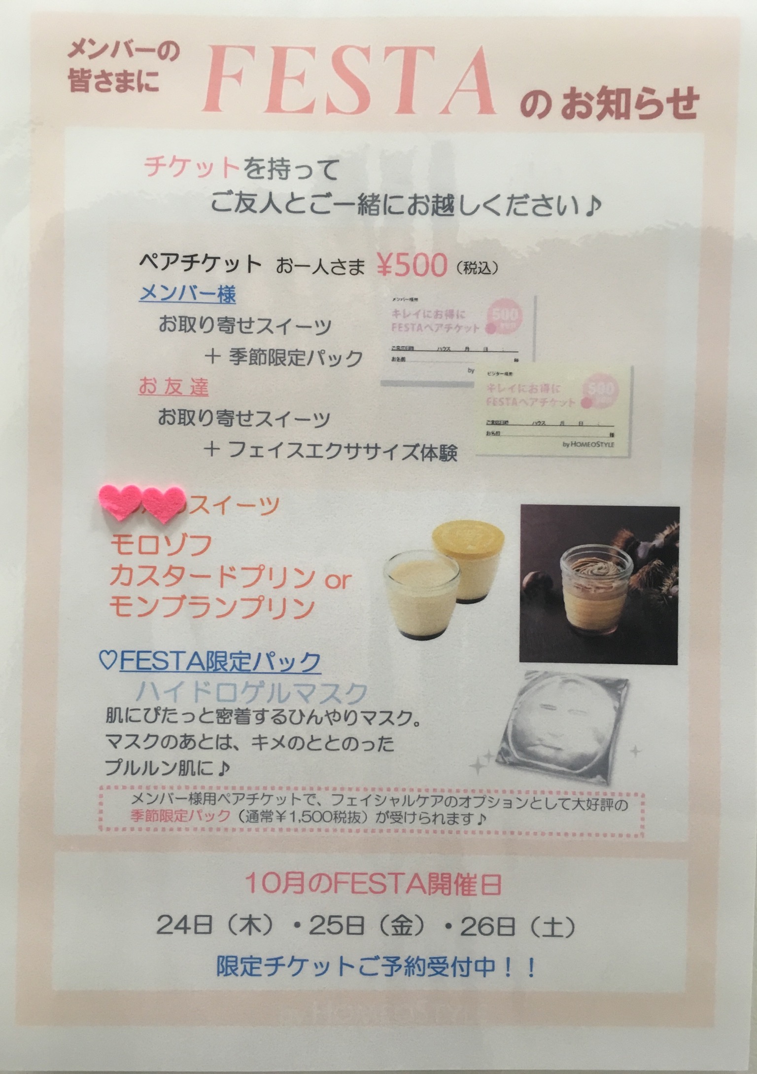 HOMEO BLOGホメオスタイルのブログ ハウスブログ 新宿 2019.10.15 新宿 新宿ハウス10月のFESTAも🍮 皆さんこんにちは😃10月ハロウィン🎃月のFESTAは、 24(木),25(金),26(土)の3日間です✨大好評の季節のパック ハイドロゲルマスクは 今回までとなります。また、スィーツは先月好評だったモロゾフのモンブランプリンorカスタードプリンです😆✨ Share Post: カテゴリー コラム 一覧 計量スプーンも包丁もいらない♪ 超カンタン&おいしい元気回復系スムージー アリーのHOMEO LIFE~私のお腹の中を覗いてみる。~ 「夏のスキンケア」 カラダがほしがる水 大人の夏肌は(๑•̀ㅂ•́)و✧ 細胞力をUPしましょう☆彡 今年の夏旅におすすめ ハウスブログ 一覧 6月のスケジュールです✨️ eコンクファンタスティック2023✨️ マルチオイル美容液💧 新城ハウスです🎏 5月のスケジュール🎏 米沢ハウス☘️5月スケジュール 下書き東北仙台伊達福島山形米沢関東横浜銀座新宿土浦大宮東海浜松浜北豊橋新城田原湖西名古屋岡崎西尾吉良信越・北陸長野北長野千曲松本上田佐久中野上越あらい関西大阪京都奈良吉野中国倉敷岡山福山 最近の投稿 6月のスケジュールです✨️ 2023.5.31 eコンクファンタスティック2023✨️ 2023.5.18 マルチオイル美容液💧 2023.5.8 新城ハウスです🎏 2023.5.7 5月のスケジュール🎏 2023.5.2 人気の投稿 洋服の歴史 22 views 新春♪すごろく 10 views 上田わっしょい♪ 10 views <地域限定コラボ> 地域の皆様だけのお得な話♪【 Vol.8仙台 】 9 views 雪やこんこ♪ 8 views ☆山梨銘菓 かねたまる餅☆ 8 views β2AR遺伝子 8 views 田原市銘菓 8 views 額のシワが。。。浅く?!深いしわのケアに♪ 7 views #ぴよりんチャレンジ☆ 7 views アーカイブ 2023 6月のスケジュールです✨️ eコンクファンタスティック2023✨️ マルチオイル美容液💧 新城ハウスです🎏 5月のスケジュール🎏 2022 皆様をお出迎え(^^♪ 今年もありがとうございました。 1月のスケジュール🎍 1月のスケジュール 佐久1月 スケジュ-ル 2021 2021年ありがとうございました ありがとうございました✨ 本年もありがとうございました🍀 年末好例!!お餅つき 大阪ハウスより感謝の気持ちを込めて・・・💛 2020 2020年もありがとうございました☆ 2021年もよろしくお願い致します🐄 予告!21年2月に腸内フローラチェックが受けられます。 嬉しいお声! ホメオスタイル大宮1月スケジュール 2019 1月のスケジュール 年末年始に菌活🎶 大晦日 ありがとうございました。 大晦日♪ 2018 2018年も、ありがとうございました。 奈良ハウスの門松 2018年ありがとうございました ~2019:1月スケジュール~ 1月スケジュール 2017 2017年良いお年を✨岡山ハウス ハーバリウム♪ 有馬温泉 冬の御堂筋 ありがとうございました😊❤ 2016 今年も一年ありがとうございました⭐️ 大晦日 長野ハウス★今年も一年ありがとうございました! 12月30日(金) 仙台ハウスより 美活のための年末大掃除
