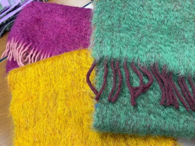 ※ファンシーウールモヘアストール (イエロー、ピンク、グリーンの3色展開)