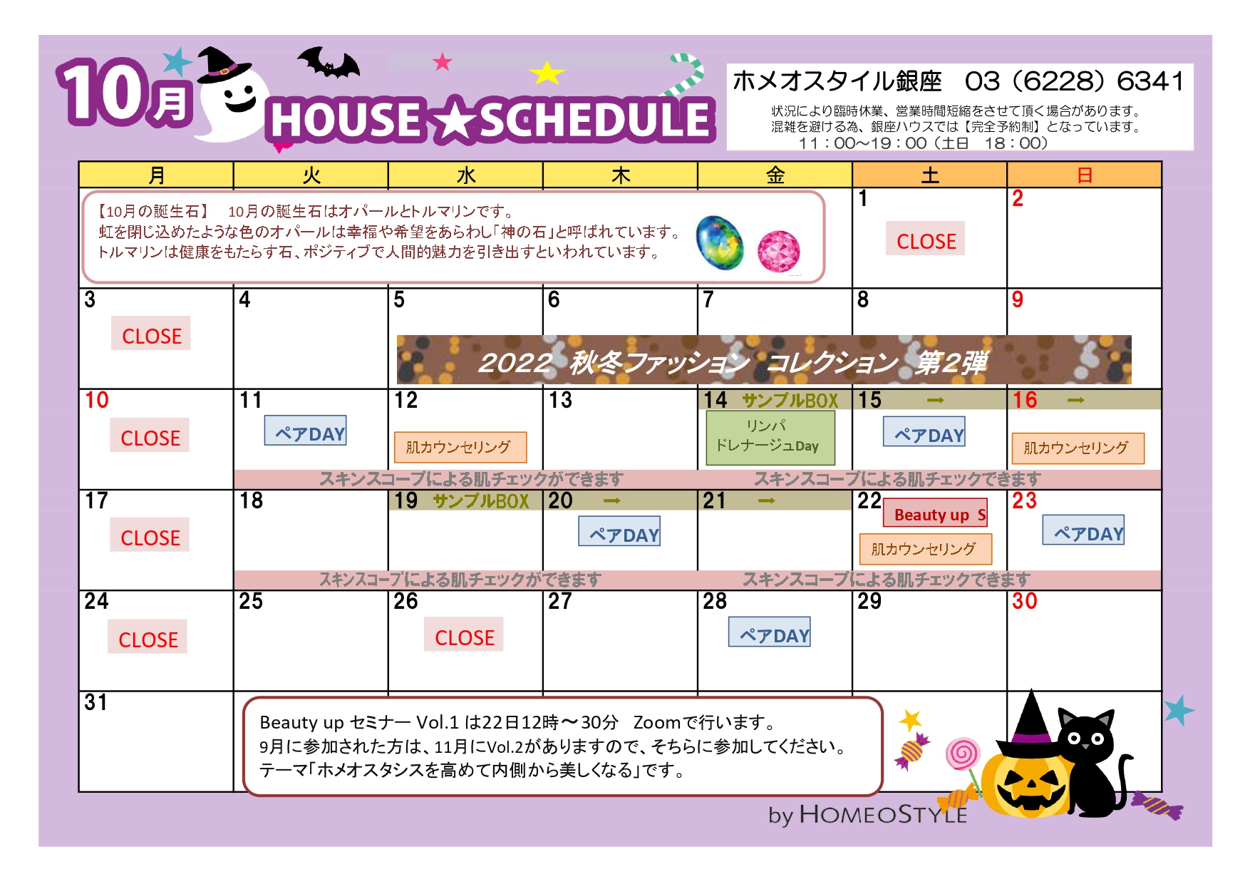 ●22日は先月も行いました、ビューティーアップセミナーⅠをzoomで行います。先月参加された方は11月6日のⅡに参加してくださいね。