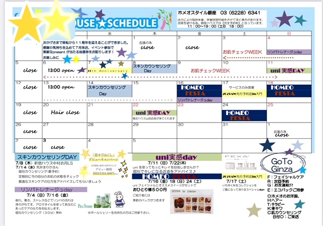メンバーの皆様への感謝の気持ちを込めて、7月中銀座ハウスへ来店、各種イベント参加、お買い物6000円ごとに応募券✨をお配りします。
