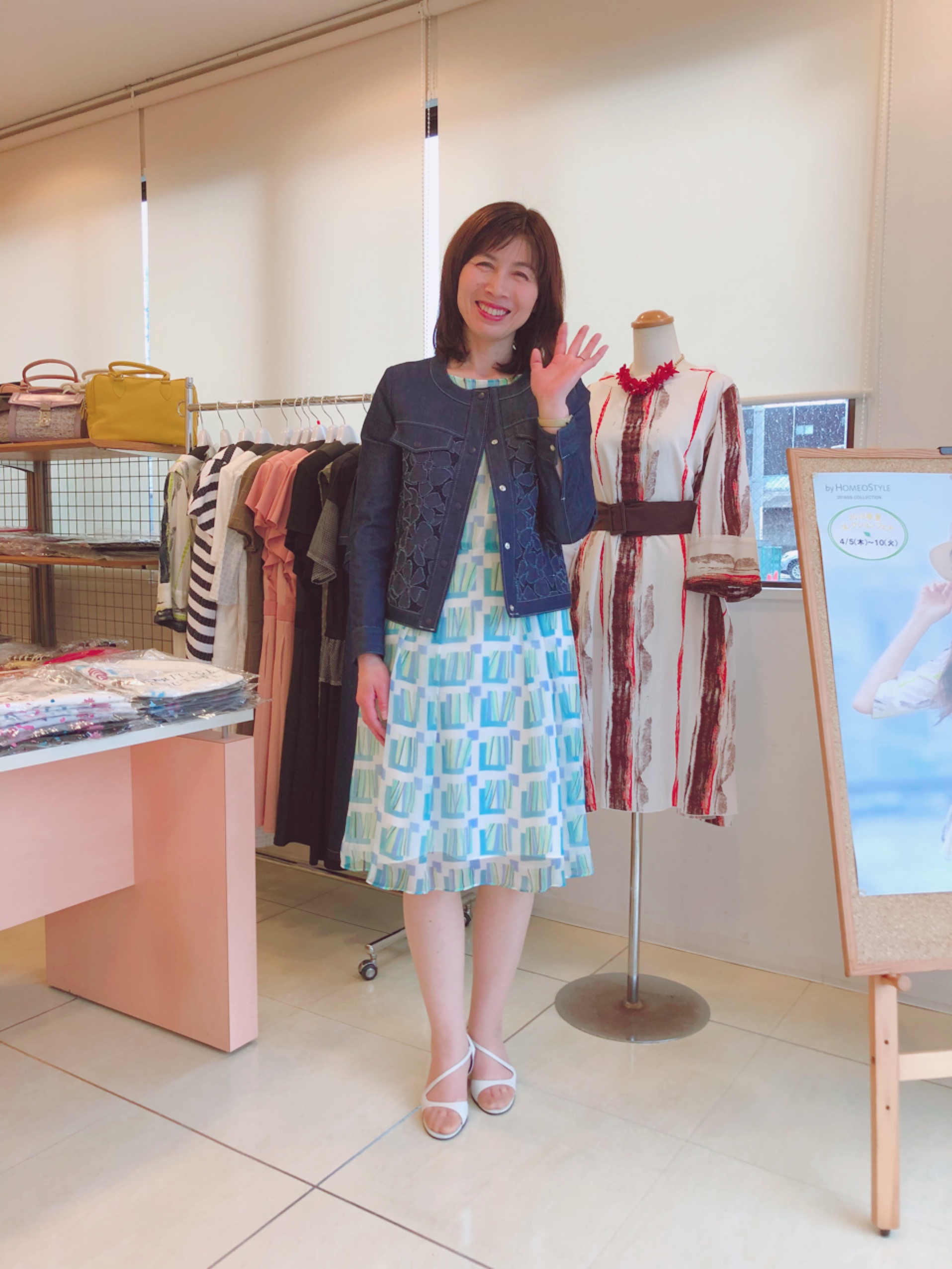 昨年ご購入いただいたシルクシフォンプリントワンピースに、大人気!今年のオパールデニムジャケットを合わせて。