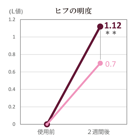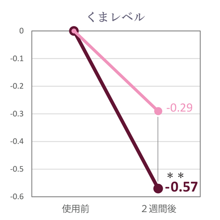 こちらは、使用前後のくまレベル(値が大きいほどっくまが濃い)と、ヒフの明度(値が大きいほど明るい)の変化量をあらわしています。
