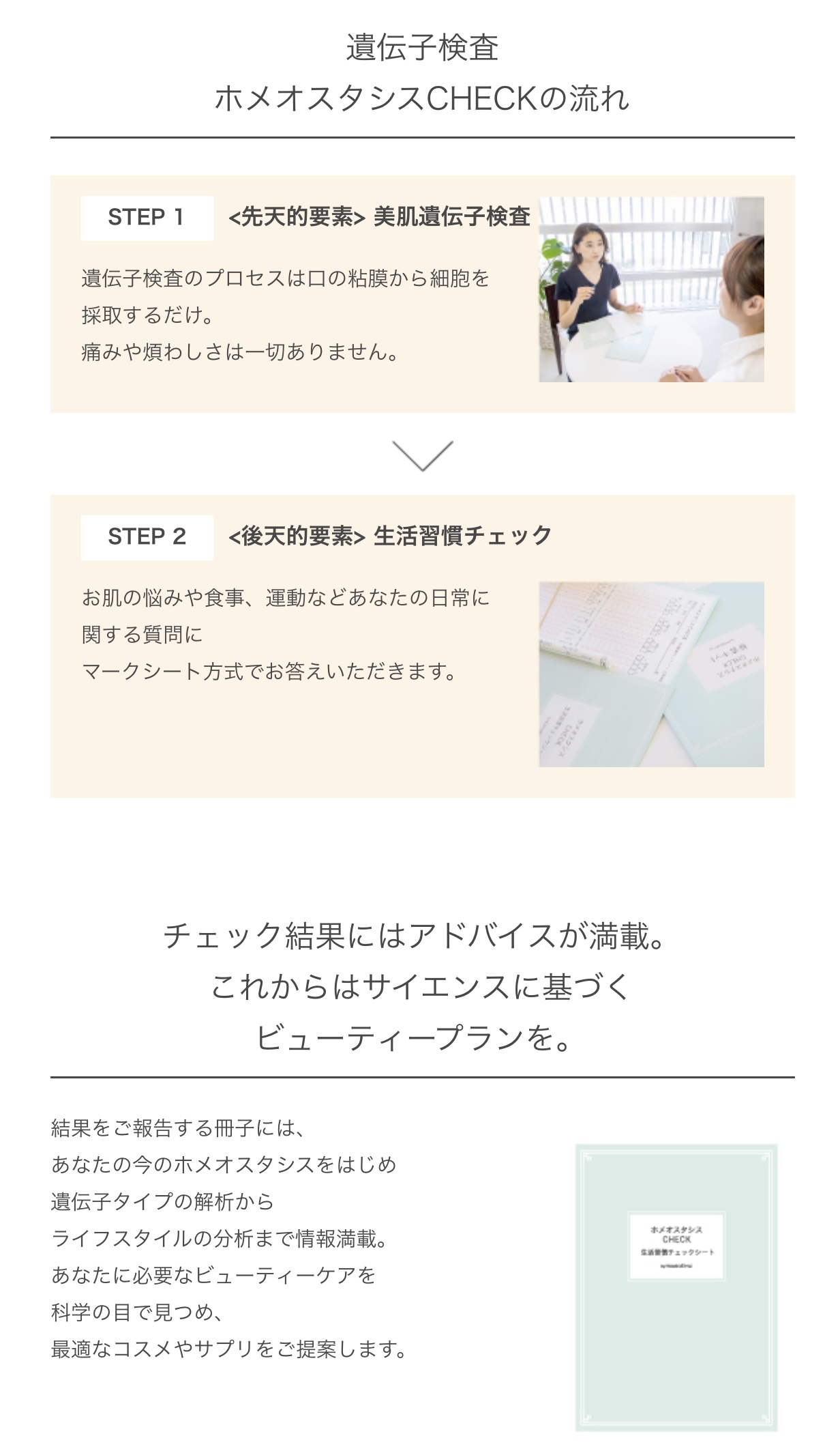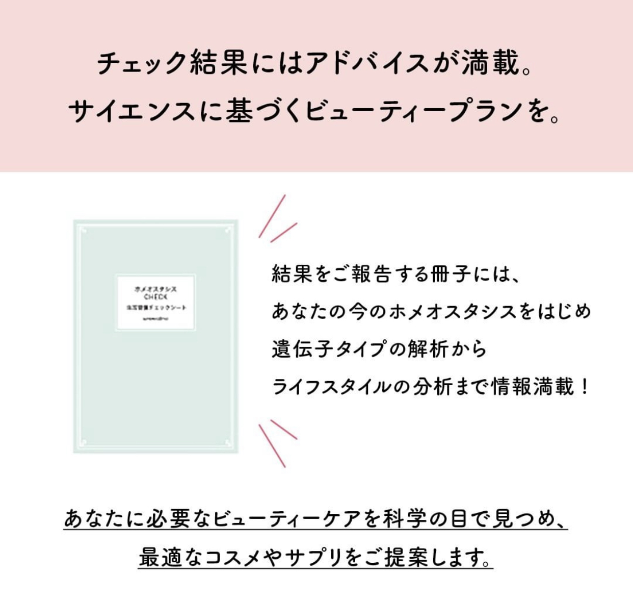 世の中にはいろんな遺伝子検査がありますが、ホメオスタイルのは結果だけでなく、