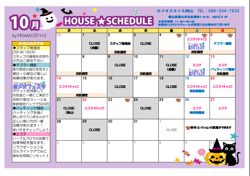 HOMEO BLOGホメオスタイルのブログ ハウスブログ 岡山 2019.10.10 岡山 10月のスケジュール 岡山ハウスです。 テスラーやパッティングの講座など 参加型のイベントはとても楽しいですよ! お待ちしております♪ 詳しくはこちらから Share Post: カテゴリー コラム 一覧 計量スプーンも包丁もいらない♪ 超カンタン&おいしい元気回復系スムージー アリーのHOMEO LIFE~私のお腹の中を覗いてみる。~ 「夏のスキンケア」 カラダがほしがる水 大人の夏肌は(๑•̀ㅂ•́)و✧ 細胞力をUPしましょう☆彡 今年の夏旅におすすめ ハウスブログ 一覧 6月のスケジュールです✨️ eコンクファンタスティック2023✨️ マルチオイル美容液💧 新城ハウスです🎏 5月のスケジュール🎏 米沢ハウス☘️5月スケジュール 下書き東北仙台伊達福島山形米沢関東横浜銀座新宿土浦大宮東海浜松浜北豊橋新城田原湖西名古屋岡崎西尾吉良信越・北陸長野北長野千曲松本上田佐久中野上越あらい関西大阪京都奈良吉野中国倉敷岡山福山 最近の投稿 6月のスケジュールです✨️ 2023.5.31 eコンクファンタスティック2023✨️ 2023.5.18 マルチオイル美容液💧 2023.5.8 新城ハウスです🎏 2023.5.7 5月のスケジュール🎏 2023.5.2 人気の投稿 洋服の歴史 26 views 美白菌(ガイド解説) 22 views たけのこ、ニョッキ 22 views 💙𝐧𝐞𝐰シンデレラクリーム💙 15 views #ぴよりんチャレンジ☆ 14 views 松本山雅! 12 views フラワーの日 11 views ジュエリーフェア 14-17日 11 views 旧丹生小学校 11 views HOMEO de Café 11 views アーカイブ 2023 6月のスケジュールです✨️ eコンクファンタスティック2023✨️ マルチオイル美容液💧 新城ハウスです🎏 5月のスケジュール🎏 2022 皆様をお出迎え(^^♪ 今年もありがとうございました。 1月のスケジュール🎍 1月のスケジュール 佐久1月 スケジュ-ル 2021 2021年ありがとうございました ありがとうございました✨ 本年もありがとうございました🍀 年末好例!!お餅つき 大阪ハウスより感謝の気持ちを込めて・・・💛 2020 2020年もありがとうございました☆ 2021年もよろしくお願い致します🐄 予告!21年2月に腸内フローラチェックが受けられます。 嬉しいお声! ホメオスタイル大宮1月スケジュール 2019 1月のスケジュール 年末年始に菌活🎶 大晦日 ありがとうございました。 大晦日♪ 2018 2018年も、ありがとうございました。 奈良ハウスの門松 2018年ありがとうございました ~2019:1月スケジュール~ 1月スケジュール 2017 2017年良いお年を✨岡山ハウス ハーバリウム♪ 有馬温泉 冬の御堂筋 ありがとうございました😊❤ 2016 今年も一年ありがとうございました⭐️ 大晦日 長野ハウス★今年も一年ありがとうございました! 12月30日(金) 仙台ハウスより 美活のための年末大掃除