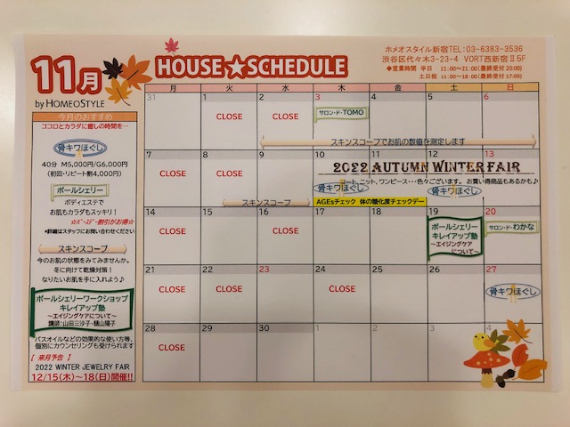 HOMEO BLOGホメオスタイルのブログ ハウスブログ 新宿 2022.10.31 新宿 11月スケジュール♪ 肌寒くなってきたなーと月初は思っていましたが、 あっという間に10月も終わり、本格的に寒くなってきました。 11月はAGEsチェックデーが10日と11日に。 また、19日にはポールシェリーのキレイアップ塾があります! 11月も皆さまのご来店を楽しみにお待ちしております! 10月もありがとうございました‼ Share Post: カテゴリー コラム 一覧 計量スプーンも包丁もいらない♪ 超カンタン&おいしい元気回復系スムージー アリーのHOMEO LIFE~私のお腹の中を覗いてみる。~ 「夏のスキンケア」 カラダがほしがる水 大人の夏肌は(๑•̀ㅂ•́)و✧ 細胞力をUPしましょう☆彡 今年の夏旅におすすめ ハウスブログ 一覧 6月のスケジュールです✨️ eコンクファンタスティック2023✨️ マルチオイル美容液💧 新城ハウスです🎏 5月のスケジュール🎏 米沢ハウス☘️5月スケジュール 下書き東北仙台伊達福島山形米沢関東横浜銀座新宿土浦大宮東海浜松浜北豊橋新城田原湖西名古屋岡崎西尾吉良信越・北陸長野北長野千曲松本上田佐久中野上越あらい関西大阪京都奈良吉野中国倉敷岡山福山 最近の投稿 6月のスケジュールです✨️ 2023.5.31 eコンクファンタスティック2023✨️ 2023.5.18 マルチオイル美容液💧 2023.5.8 新城ハウスです🎏 2023.5.7 5月のスケジュール🎏 2023.5.2 人気の投稿 洋服の歴史 28 views <地域限定コラボ> 地域の皆様だけのお得な話♪【 Vol.8仙台 】 14 views マツコの知らない抹茶スイーツの世界☆西尾 12 views β2AR遺伝子 6 views 西尾名物!抹茶の大福☆ 6 views GPX1遺伝子 6 views ヘルシークッキング 5 views ☆銀座ハウス☆ ヒルナンデスに出ます!! 5 views もっテイク上田 5 views インスタ映え☆生八ツ橋 4 views アーカイブ 2023 6月のスケジュールです✨️ eコンクファンタスティック2023✨️ マルチオイル美容液💧 新城ハウスです🎏 5月のスケジュール🎏 2022 皆様をお出迎え(^^♪ 今年もありがとうございました。 1月のスケジュール🎍 1月のスケジュール 佐久1月 スケジュ-ル 2021 2021年ありがとうございました ありがとうございました✨ 本年もありがとうございました🍀 年末好例!!お餅つき 大阪ハウスより感謝の気持ちを込めて・・・💛 2020 2020年もありがとうございました☆ 2021年もよろしくお願い致します🐄 予告!21年2月に腸内フローラチェックが受けられます。 嬉しいお声! ホメオスタイル大宮1月スケジュール 2019 1月のスケジュール 年末年始に菌活🎶 大晦日 ありがとうございました。 大晦日♪ 2018 2018年も、ありがとうございました。 奈良ハウスの門松 2018年ありがとうございました ~2019:1月スケジュール~ 1月スケジュール 2017 2017年良いお年を✨岡山ハウス ハーバリウム♪ 有馬温泉 冬の御堂筋 ありがとうございました😊❤ 2016 今年も一年ありがとうございました⭐️ 大晦日 長野ハウス★今年も一年ありがとうございました! 12月30日(金) 仙台ハウスより 美活のための年末大掃除