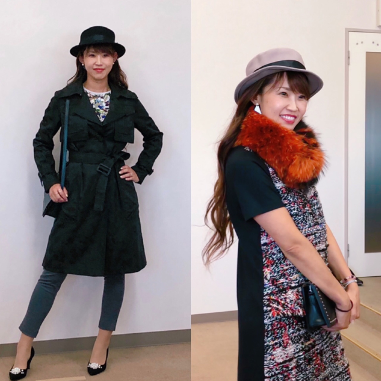 右:ミックスツィードワンピースは後ろ身ごろと袖の素材を変えているので着心地がいいです♪
