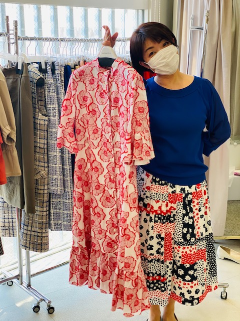 今回のこちらのコットンプリントのシリーズは肌触りが柔らかで見た目上品なコットンローン素材を使用、他の平織り生地と比べて薄くて軽い生地、通気性も〇、適度なハリ感もあるからシルエットがキレイなのも特徴です💖