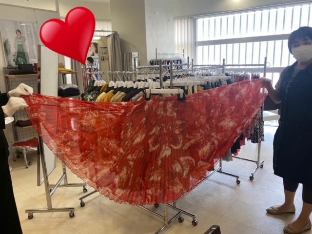 シフォオンプリーツスカート…清涼感抜群!ポリエステルシフォン、ホメオスタイルオリジナルの柄とカラーを合わせた素材