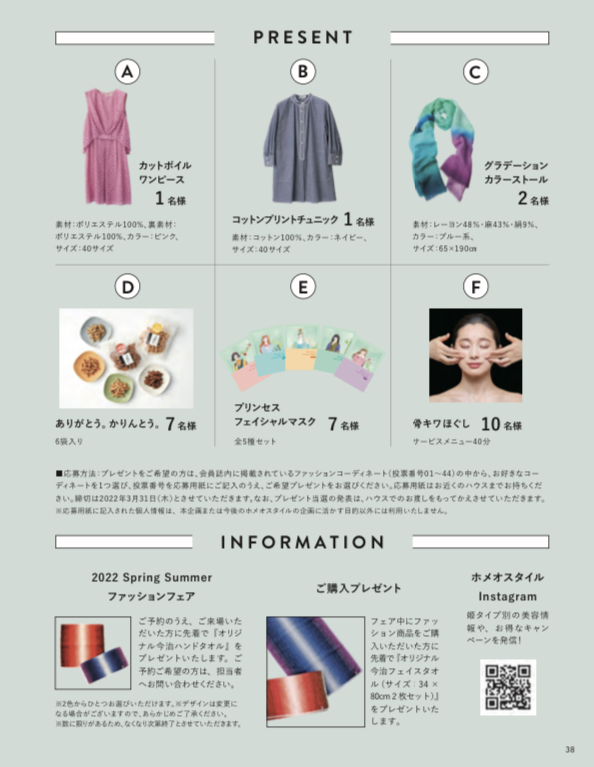 presentの応募も是非してください。お気に入りのコーデイネートを選んで…、抽選で28名の方に当たります。前回、銀座ハウスではお洋服が当たった方がいたんです~🤩 次はあなたかも😃🤍