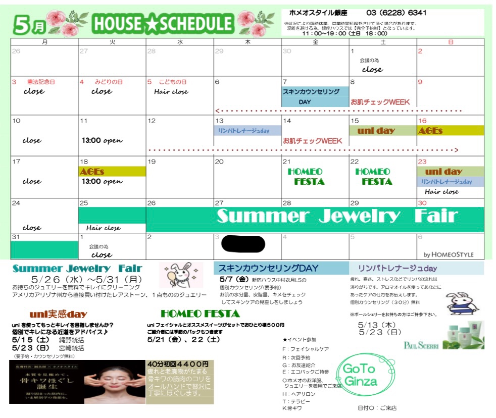 5月スケジュールin ginza