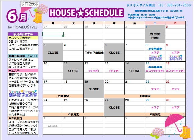HOMEO BLOGホメオスタイルのブログ ハウスブログ 岡山 2019.6.4 岡山 6月のスケジュール 岡山ハウスです。 今月は大感謝祭!!ということで お得がいっぱい\(^o^)/ 早めのご来店お待ちしております♪ スケジュールはこちらから Share Post: カテゴリー コラム 一覧 計量スプーンも包丁もいらない♪ 超カンタン&おいしい元気回復系スムージー アリーのHOMEO LIFE~私のお腹の中を覗いてみる。~ 「夏のスキンケア」 カラダがほしがる水 大人の夏肌は(๑•̀ㅂ•́)و✧ 細胞力をUPしましょう☆彡 今年の夏旅におすすめ ハウスブログ 一覧 6月のスケジュールです✨️ eコンクファンタスティック2023✨️ マルチオイル美容液💧 新城ハウスです🎏 5月のスケジュール🎏 米沢ハウス☘️5月スケジュール 下書き東北仙台伊達福島山形米沢関東横浜銀座新宿土浦大宮東海浜松浜北豊橋新城田原湖西名古屋岡崎西尾吉良信越・北陸長野北長野千曲松本上田佐久中野上越あらい関西大阪京都奈良吉野中国倉敷岡山福山 最近の投稿 6月のスケジュールです✨️ 2023.5.31 eコンクファンタスティック2023✨️ 2023.5.18 マルチオイル美容液💧 2023.5.8 新城ハウスです🎏 2023.5.7 5月のスケジュール🎏 2023.5.2 人気の投稿 洋服の歴史 27 views たけのこ、ニョッキ 22 views 美白菌(ガイド解説) 18 views #ぴよりんチャレンジ☆ 16 views <地域限定コラボ> 地域の皆様だけのお得な話♪【 Vol.8仙台 】 15 views 💙𝐧𝐞𝐰シンデレラクリーム💙 15 views HOMEO de Café 11 views 小さい命の底知れぬパワー💡 10 views β2AR遺伝子 8 views 額のシワが。。。浅く?!深いしわのケアに♪ 7 views アーカイブ 2023 6月のスケジュールです✨️ eコンクファンタスティック2023✨️ マルチオイル美容液💧 新城ハウスです🎏 5月のスケジュール🎏 2022 皆様をお出迎え(^^♪ 今年もありがとうございました。 1月のスケジュール🎍 1月のスケジュール 佐久1月 スケジュ-ル 2021 2021年ありがとうございました ありがとうございました✨ 本年もありがとうございました🍀 年末好例!!お餅つき 大阪ハウスより感謝の気持ちを込めて・・・💛 2020 2020年もありがとうございました☆ 2021年もよろしくお願い致します🐄 予告!21年2月に腸内フローラチェックが受けられます。 嬉しいお声! ホメオスタイル大宮1月スケジュール 2019 1月のスケジュール 年末年始に菌活🎶 大晦日 ありがとうございました。 大晦日♪ 2018 2018年も、ありがとうございました。 奈良ハウスの門松 2018年ありがとうございました ~2019:1月スケジュール~ 1月スケジュール 2017 2017年良いお年を✨岡山ハウス ハーバリウム♪ 有馬温泉 冬の御堂筋 ありがとうございました😊❤ 2016 今年も一年ありがとうございました⭐️ 大晦日 長野ハウス★今年も一年ありがとうございました! 12月30日(金) 仙台ハウスより 美活のための年末大掃除