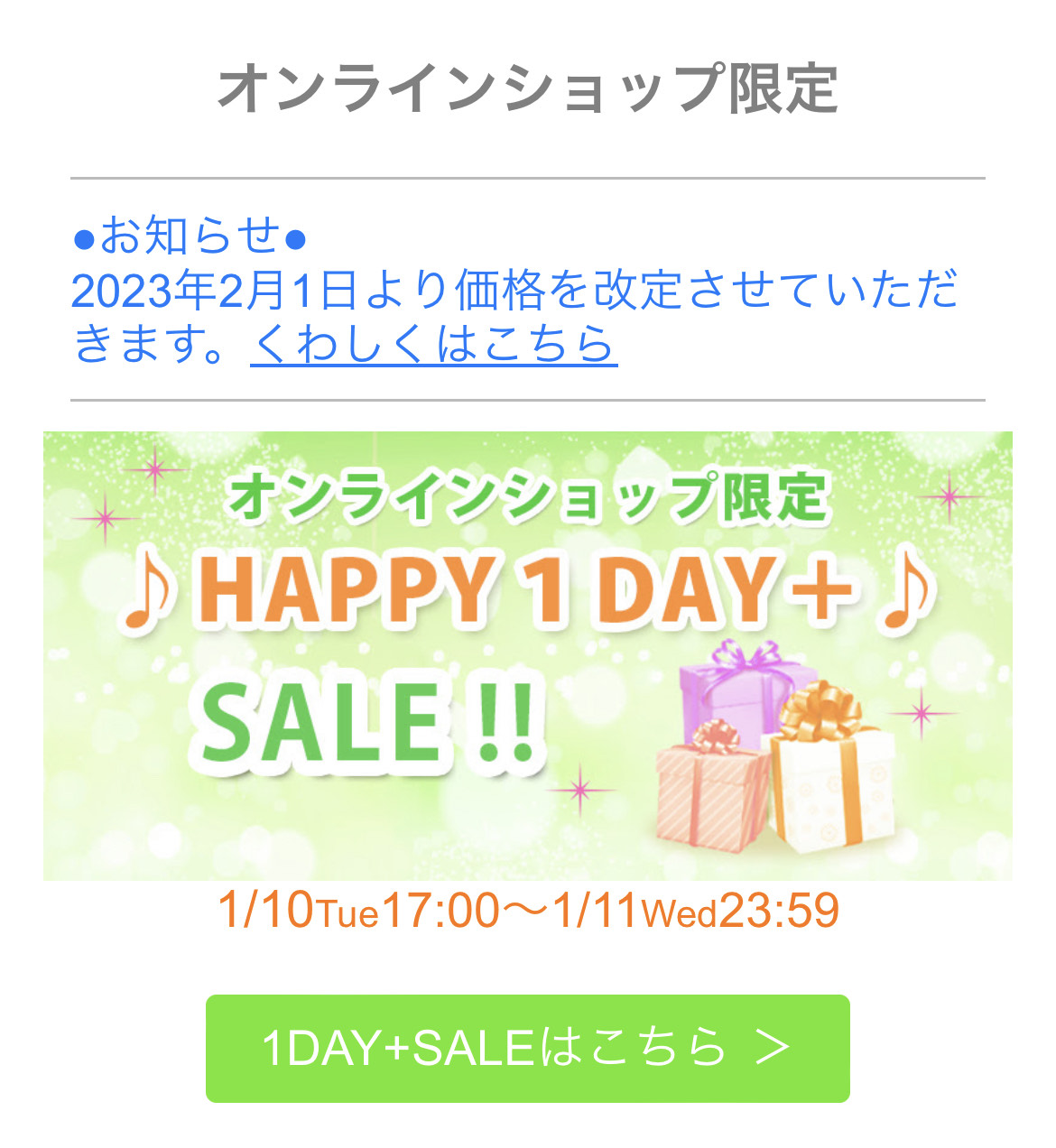 HOMEO BLOGホメオスタイルのブログ ハウスブログ 銀座 2023.1.11 銀座 HAPPY 1DAY + ♪🐰 本日HAPPY 1DAY + ♪ オンラインショップ限定になってます。 コフレは、好評につき、今月もお得な商品️ そして、プララ5パックで2250円のところ1080円になってます ※賞味期限2023/2/4までとなります 2月よりアプリ導入に伴い、 白金倶楽部のサービスは、1月いっぱいで終了となります。 ローション2本購入でコットン1箱プレゼントも今月末までです 2月の価格改定前にお得にお化粧品購入してください Share Post: カテゴリー コラム 一覧 計量スプーンも包丁もいらない♪ 超カンタン&おいしい元気回復系スムージー アリーのHOMEO LIFE~私のお腹の中を覗いてみる。~ 「夏のスキンケア」 カラダがほしがる水 大人の夏肌は(๑•̀ㅂ•́)و✧ 細胞力をUPしましょう☆彡 今年の夏旅におすすめ ハウスブログ 一覧 6月のスケジュールです✨️ eコンクファンタスティック2023✨️ マルチオイル美容液💧 新城ハウスです🎏 5月のスケジュール🎏 米沢ハウス☘️5月スケジュール 下書き東北仙台伊達福島山形米沢関東横浜銀座新宿土浦大宮東海浜松浜北豊橋新城田原湖西名古屋岡崎西尾吉良信越・北陸長野北長野千曲松本上田佐久中野上越あらい関西大阪京都奈良吉野中国倉敷岡山福山 最近の投稿 6月のスケジュールです✨️ 2023.5.31 eコンクファンタスティック2023✨️ 2023.5.18 マルチオイル美容液💧 2023.5.8 新城ハウスです🎏 2023.5.7 5月のスケジュール🎏 2023.5.2 人気の投稿 洋服の歴史 32 views <地域限定コラボ> 地域の皆様だけのお得な話♪【 Vol.8仙台 】 26 views #赤井先生#ジュエリー#クリスマス#年末#キラキラ#プレゼント 14 views <倭‐YAMATO> 11 views β2AR遺伝子 10 views 本日の名古屋は😊 9 views HOMEO de Cafe 8 views 芸術の秋ですねぇ 8 views 平均寿命と健康寿命 8 views マツコの知らない抹茶スイーツの世界☆西尾 6 views アーカイブ 2023 6月のスケジュールです✨️ eコンクファンタスティック2023✨️ マルチオイル美容液💧 新城ハウスです🎏 5月のスケジュール🎏 2022 皆様をお出迎え(^^♪ 今年もありがとうございました。 1月のスケジュール🎍 1月のスケジュール 佐久1月 スケジュ-ル 2021 2021年ありがとうございました ありがとうございました✨ 本年もありがとうございました🍀 年末好例!!お餅つき 大阪ハウスより感謝の気持ちを込めて・・・💛 2020 2020年もありがとうございました☆ 2021年もよろしくお願い致します🐄 予告!21年2月に腸内フローラチェックが受けられます。 嬉しいお声! ホメオスタイル大宮1月スケジュール 2019 1月のスケジュール 年末年始に菌活🎶 大晦日 ありがとうございました。 大晦日♪ 2018 2018年も、ありがとうございました。 奈良ハウスの門松 2018年ありがとうございました ~2019:1月スケジュール~ 1月スケジュール 2017 2017年良いお年を✨岡山ハウス ハーバリウム♪ 有馬温泉 冬の御堂筋 ありがとうございました😊❤ 2016 今年も一年ありがとうございました⭐️ 大晦日 長野ハウス★今年も一年ありがとうございました! 12月30日(金) 仙台ハウスより 美活のための年末大掃除