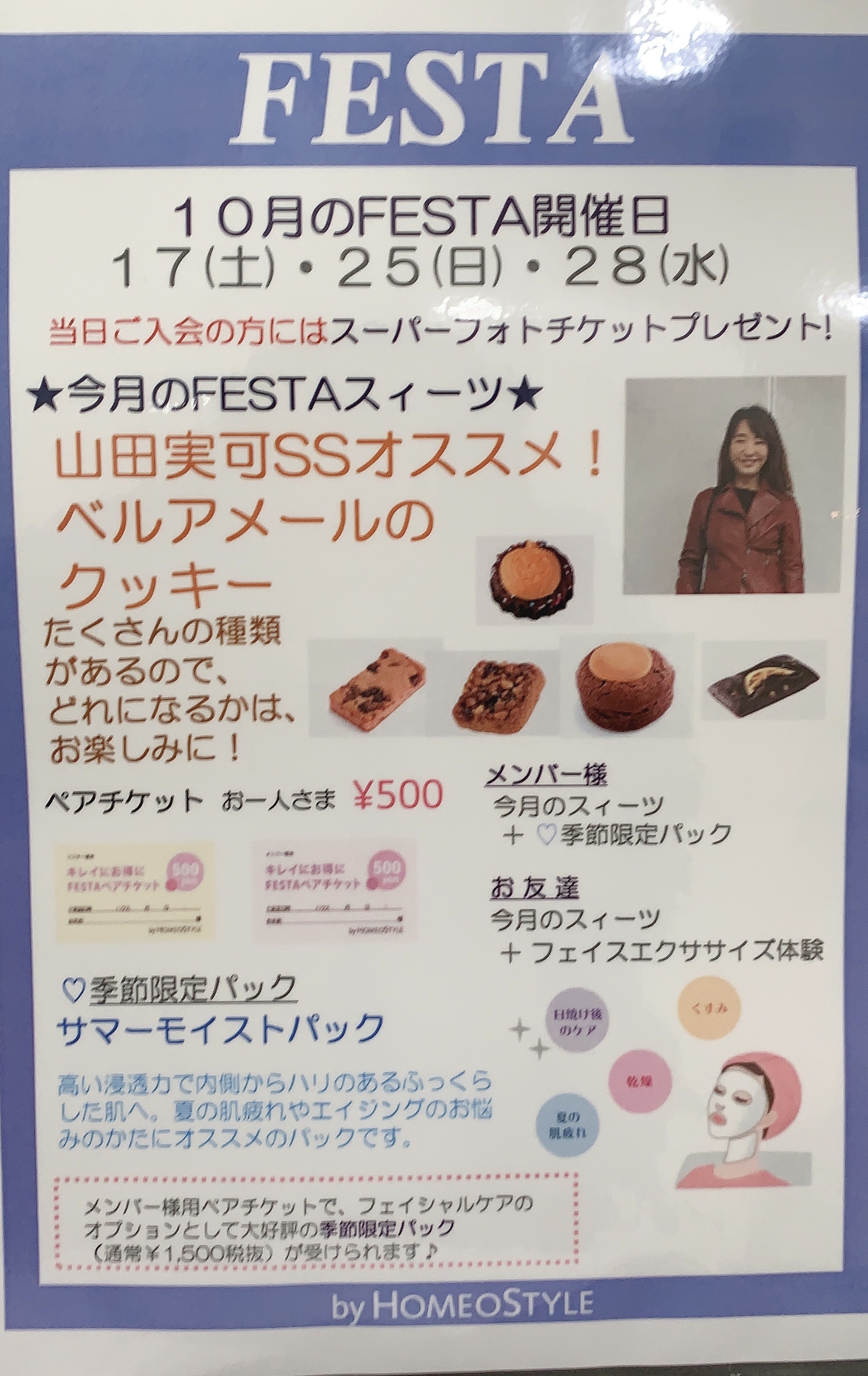 10/17(土) 25(日) 28(水) はHOMEO FESTA を開催します!