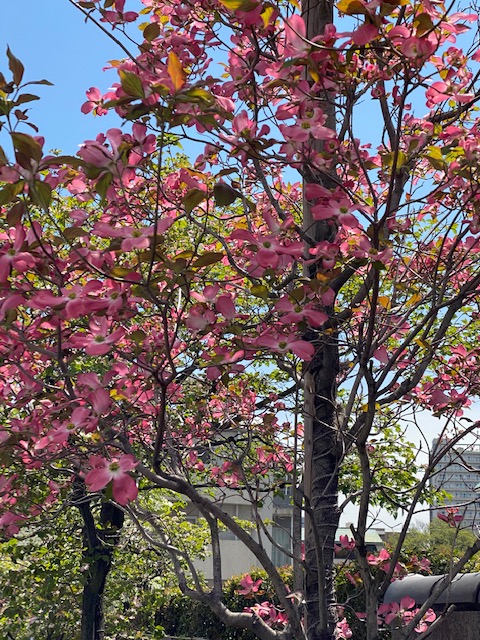 今日の東京は快晴です。 こんなに咲いてたっけ?って思うぐらい、道沿いにハナミズキ♪♪♪ キレイっ。