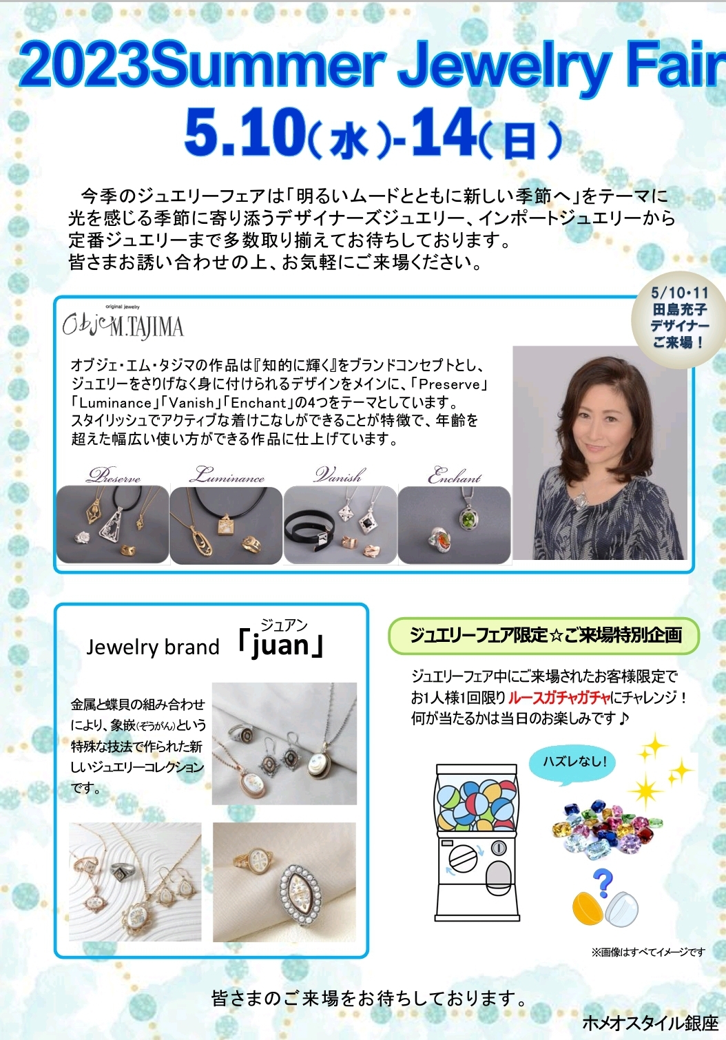 HOMEO BLOGホメオスタイルのブログ ハウスブログ 銀座 2023.4.25 銀座 Summer ジュエリーフェア 銀座ハウスでは 5/10(火)~14(日)に、 Summer.*・゚𝙹𝚎𝚠𝚎𝚕𝚛𝚢*・゚フェア を開催します。 今回は、FDJさん。 デザイナーの田島先生もいらっしゃいます(^·^)♪ 誕生石が増えたことは 皆さんご存じですか? ステキな石ばかりです。 お持ちのジュエリーのクリーニングをしてもらいながら、 ストーンパワーをもらいに 是非いらしてください。 お待ちしております*。 返信転送 Share Post: カテゴリー コラム 一覧 計量スプーンも包丁もいらない♪ 超カンタン&おいしい元気回復系スムージー アリーのHOMEO LIFE~私のお腹の中を覗いてみる。~ 「夏のスキンケア」 カラダがほしがる水 大人の夏肌は(๑•̀ㅂ•́)و✧ 細胞力をUPしましょう☆彡 今年の夏旅におすすめ ハウスブログ 一覧 6月のスケジュールです✨️ eコンクファンタスティック2023✨️ マルチオイル美容液💧 新城ハウスです🎏 5月のスケジュール🎏 米沢ハウス☘️5月スケジュール 下書き東北仙台伊達福島山形米沢関東横浜銀座新宿土浦大宮東海浜松浜北豊橋新城田原湖西名古屋岡崎西尾吉良信越・北陸長野北長野千曲松本上田佐久中野上越あらい関西大阪京都奈良吉野中国倉敷岡山福山 最近の投稿 6月のスケジュールです✨️ 2023.5.31 eコンクファンタスティック2023✨️ 2023.5.18 マルチオイル美容液💧 2023.5.8 新城ハウスです🎏 2023.5.7 5月のスケジュール🎏 2023.5.2 人気の投稿 洋服の歴史 29 views <地域限定コラボ> 地域の皆様だけのお得な話♪【 Vol.8仙台 】 22 views マツコの知らない抹茶スイーツの世界☆西尾 14 views ☆山梨銘菓 かねたまる餅☆ 12 views β2AR遺伝子 10 views 額のシワが。。。浅く?!深いしわのケアに♪ 9 views #ぴよりんチャレンジ☆ 9 views 日本初!!都市型ロープウェイ in桜木町駅 9 views 2色の桜?? 9 views 🎶21AWファッション🎶 9 views アーカイブ 2023 6月のスケジュールです✨️ eコンクファンタスティック2023✨️ マルチオイル美容液💧 新城ハウスです🎏 5月のスケジュール🎏 2022 皆様をお出迎え(^^♪ 今年もありがとうございました。 1月のスケジュール🎍 1月のスケジュール 佐久1月 スケジュ-ル 2021 2021年ありがとうございました ありがとうございました✨ 本年もありがとうございました🍀 年末好例!!お餅つき 大阪ハウスより感謝の気持ちを込めて・・・💛 2020 2020年もありがとうございました☆ 2021年もよろしくお願い致します🐄 予告!21年2月に腸内フローラチェックが受けられます。 嬉しいお声! ホメオスタイル大宮1月スケジュール 2019 1月のスケジュール 年末年始に菌活🎶 大晦日 ありがとうございました。 大晦日♪ 2018 2018年も、ありがとうございました。 奈良ハウスの門松 2018年ありがとうございました ~2019:1月スケジュール~ 1月スケジュール 2017 2017年良いお年を✨岡山ハウス ハーバリウム♪ 有馬温泉 冬の御堂筋 ありがとうございました😊❤ 2016 今年も一年ありがとうございました⭐️ 大晦日 長野ハウス★今年も一年ありがとうございました! 12月30日(金) 仙台ハウスより 美活のための年末大掃除
