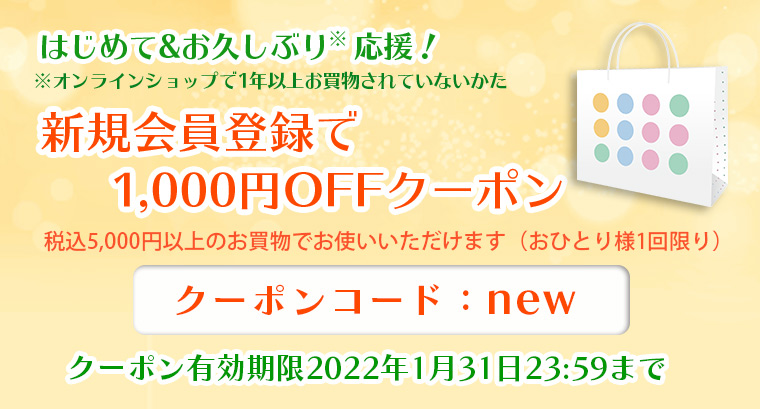 ※オンラインショップで1年以上お買物をされていないお久しぶりのかたも対象です