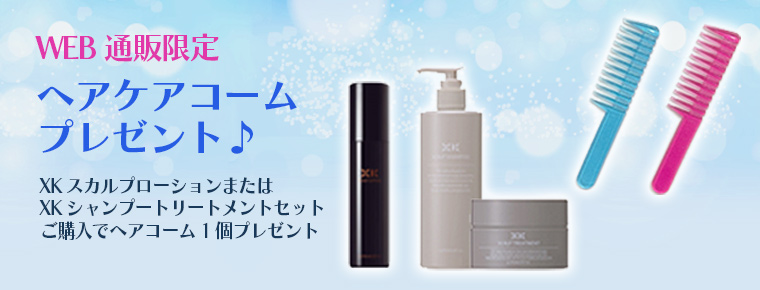 「XKスカルプローション」または「XKシャンプー&トリートメントセット」ご購入でヘアコームプレゼント♪