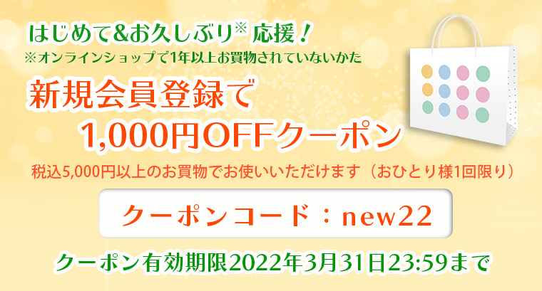 ※オンラインショップで1年以上お買物をされていないお久しぶりのかたも対象です