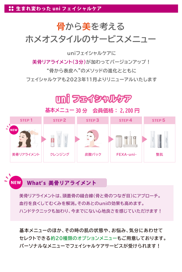 uniフェイシャルケアに美骨リアライメント(3分)が加わってバージョンアップ!